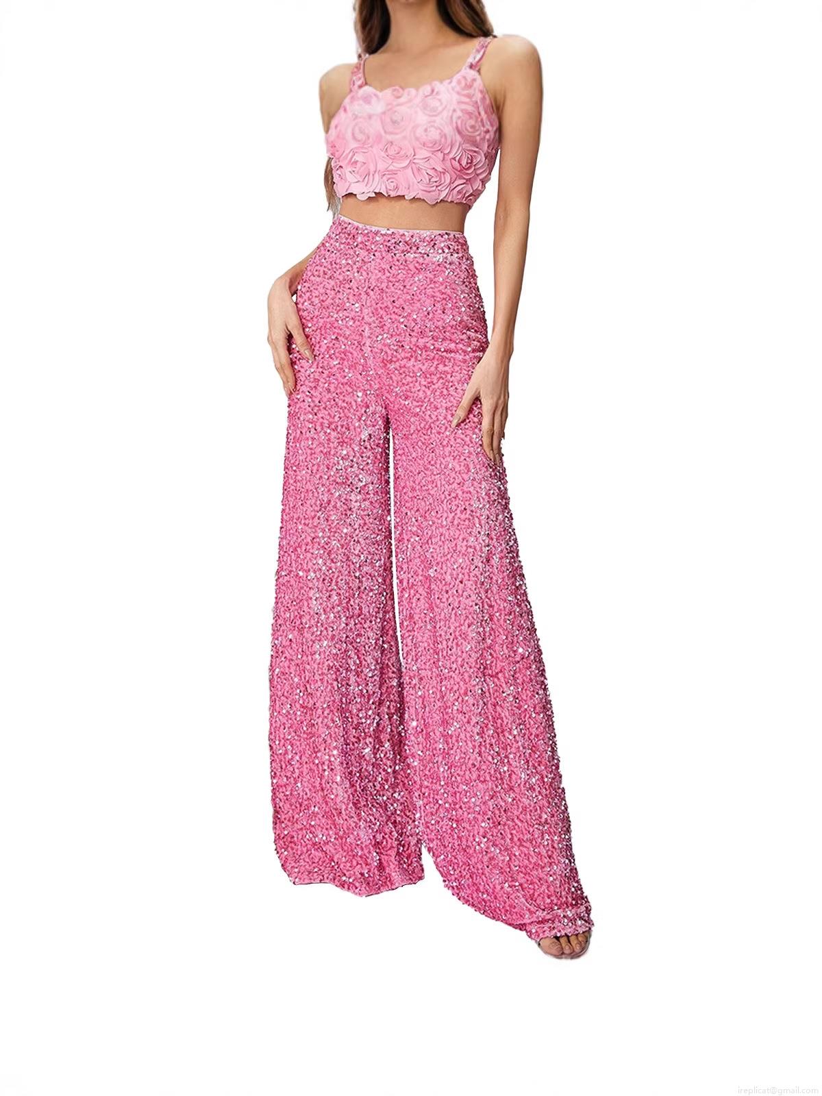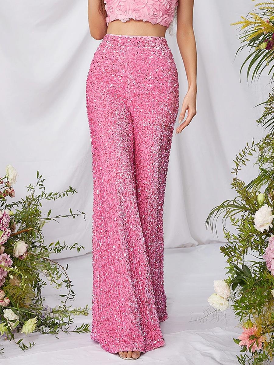 • Women's High Waisted Sequin Wide Leg Pants Sparkling Glitter Loose Trousers For Party Banquet Streetwear Chic Evening Pants Polyester Sequin Overlaid Bottoms