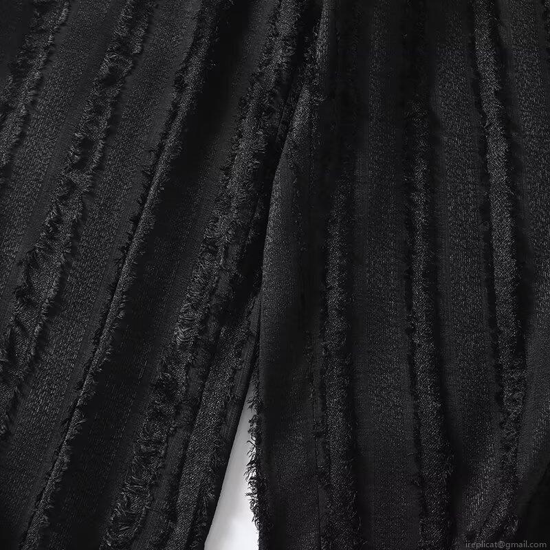 Women's High Waisted Straight Leg Pants Trendy Fringe Tassel Polyester Trousers Streetwear Casual Lazy Style Black Long Pants