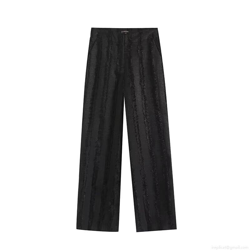 • Women's High Waisted Straight Leg Pants Trendy Fringe Tassel Polyester Trousers Streetwear Casual Lazy Style Black Long Pants