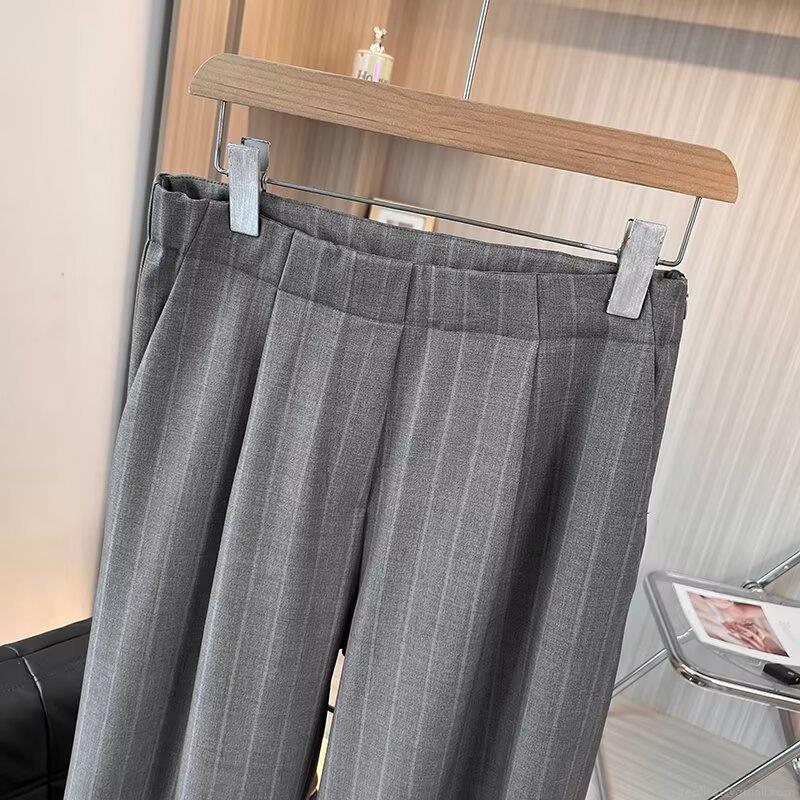 Women's High Waisted Striped Wide Leg Pants Cotton Blend Loose Casual Commuter Office Trousers Grey Autumn Fashion Straight Long Pants