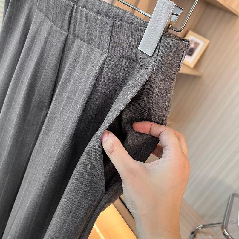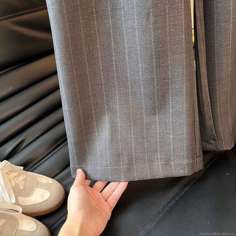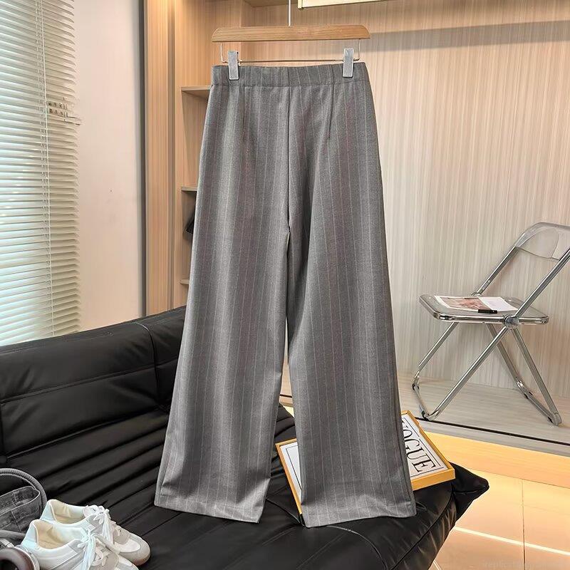 • Women's High Waisted Striped Wide Leg Pants Cotton Blend Loose Casual Commuter Office Trousers Grey Autumn Fashion Straight Long Pants
