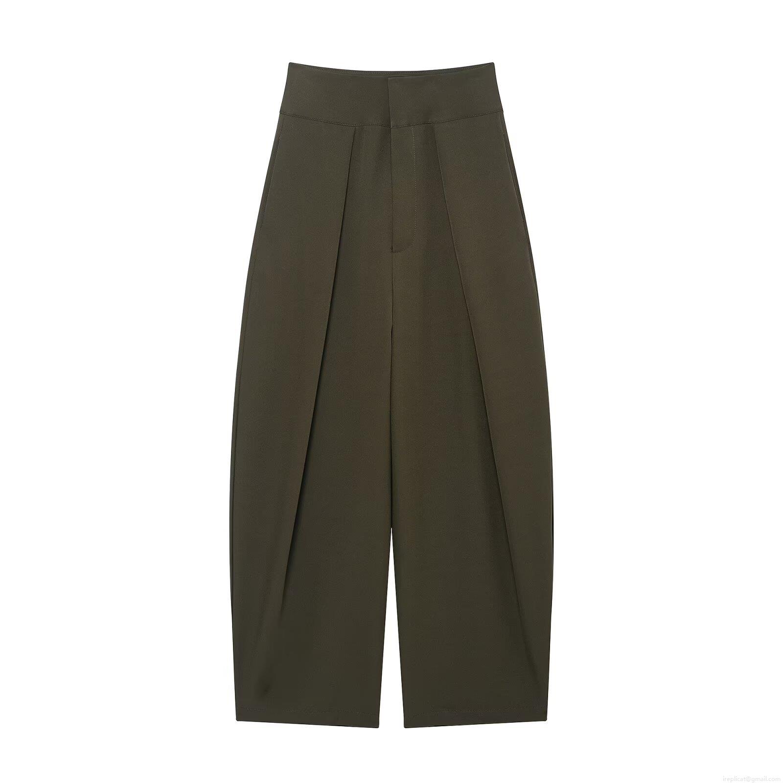 Women's High Waisted Wide Leg Casual Pants 100% Polyester Solid Color Loose Balloon Trousers For Women Casual Streetwear Style Long Pants