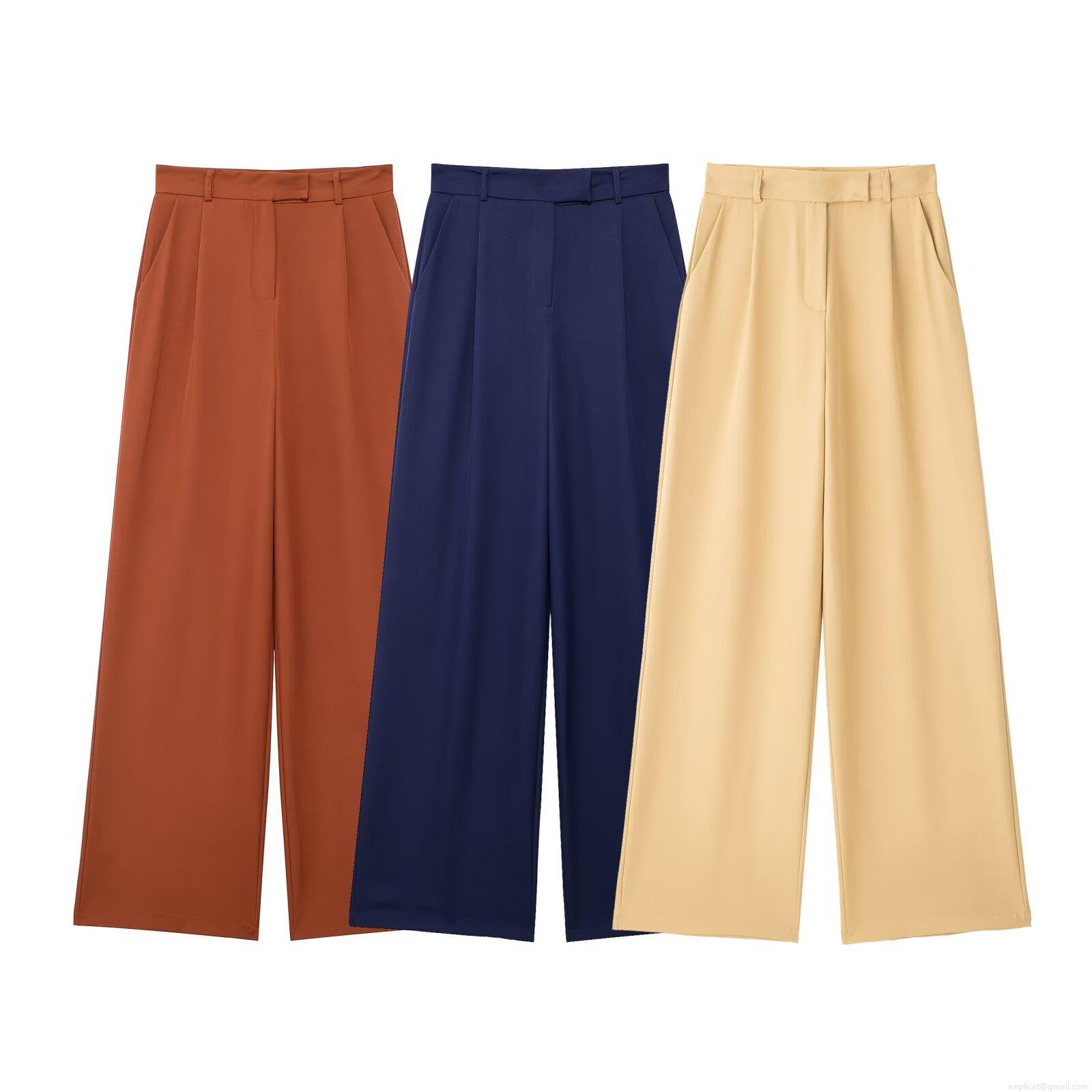 • Women's High Waisted Wide Leg Pants 100% Polyester Pleated Loose Casual Trousers With Pockets For Office Streetwear Y2K Style