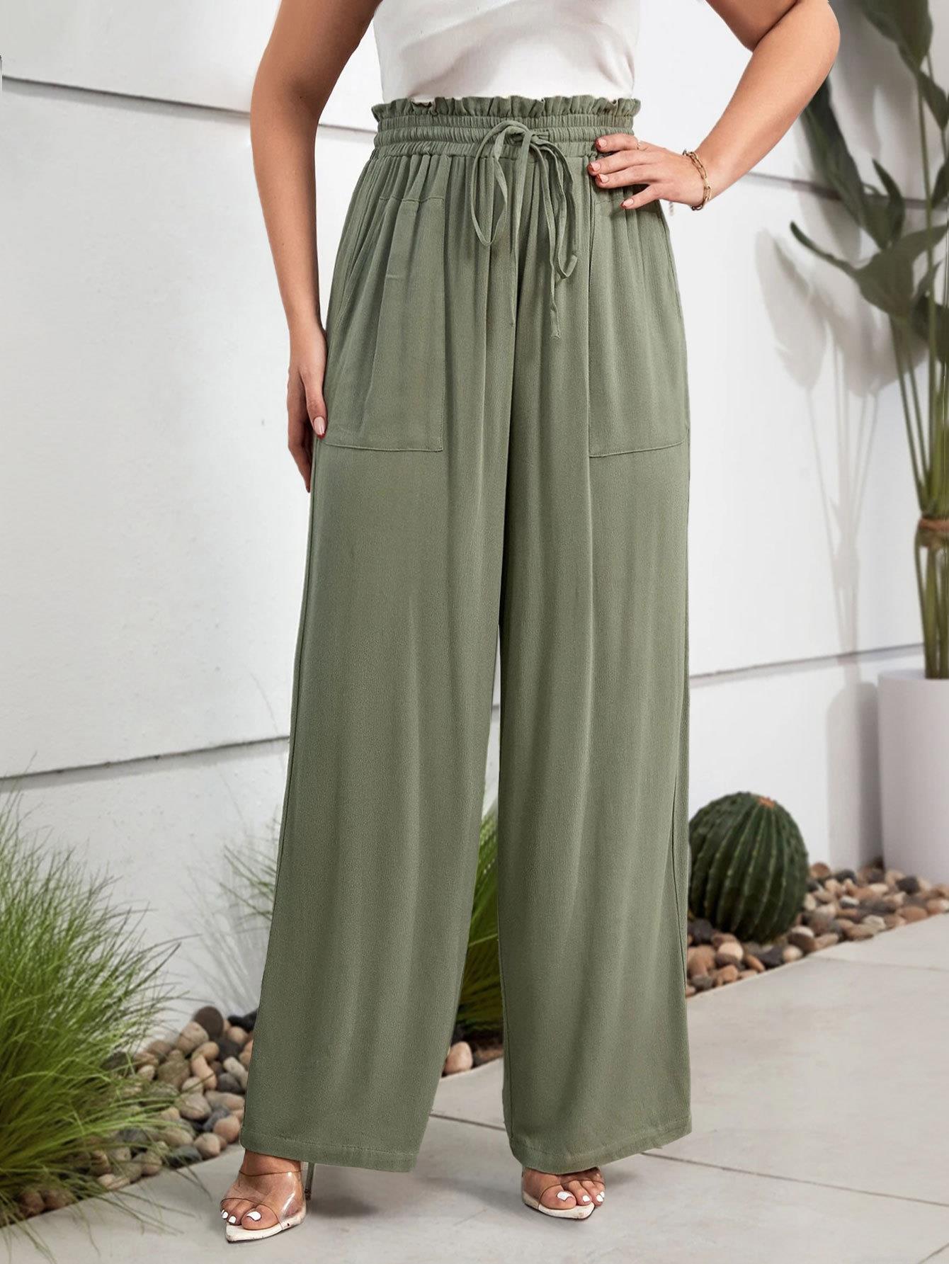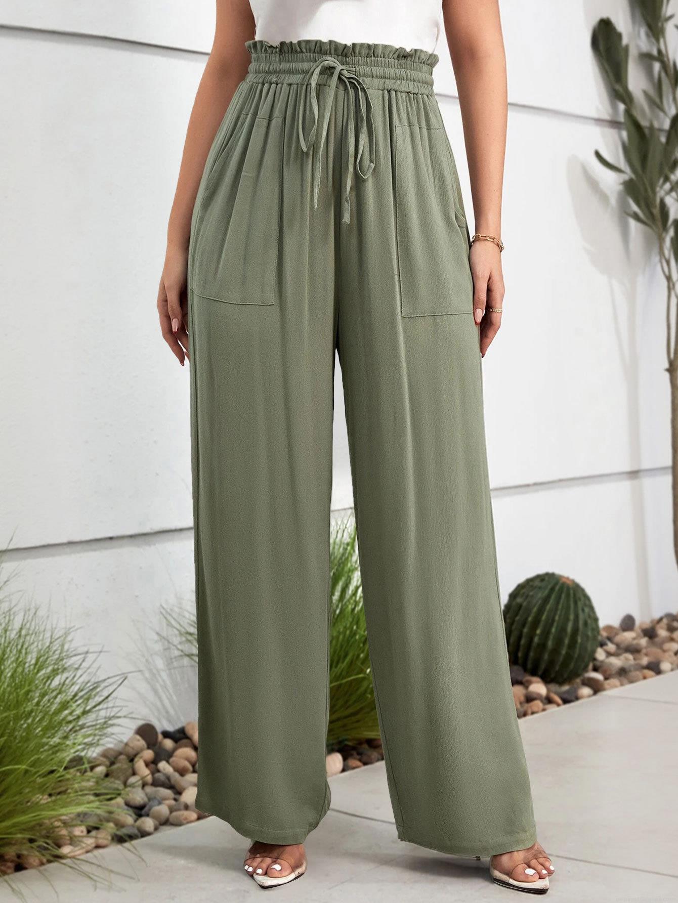 • Women's High Waisted Wide Leg Pants 100% Rayon Drawstring Elastic Waist Casual Vacation Trousers With Pockets Loose Comfortable Slimming Solid Color Summer Bottoms