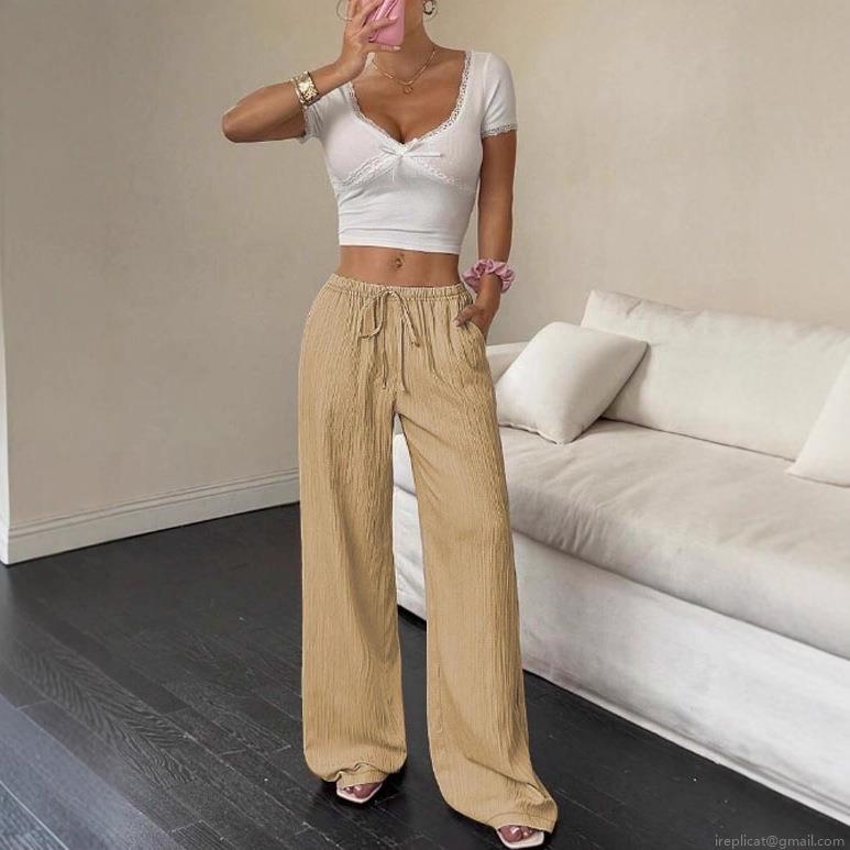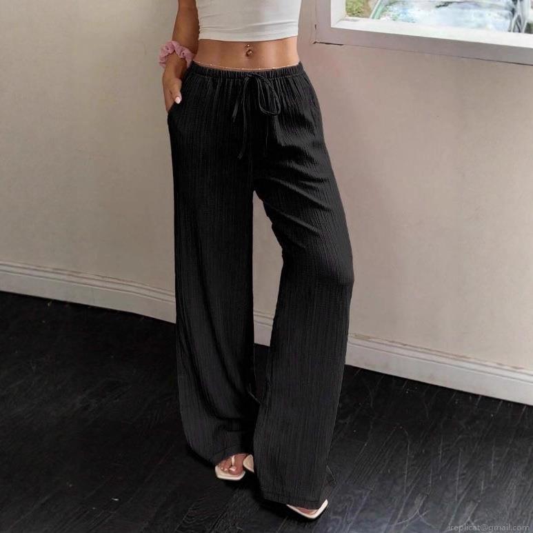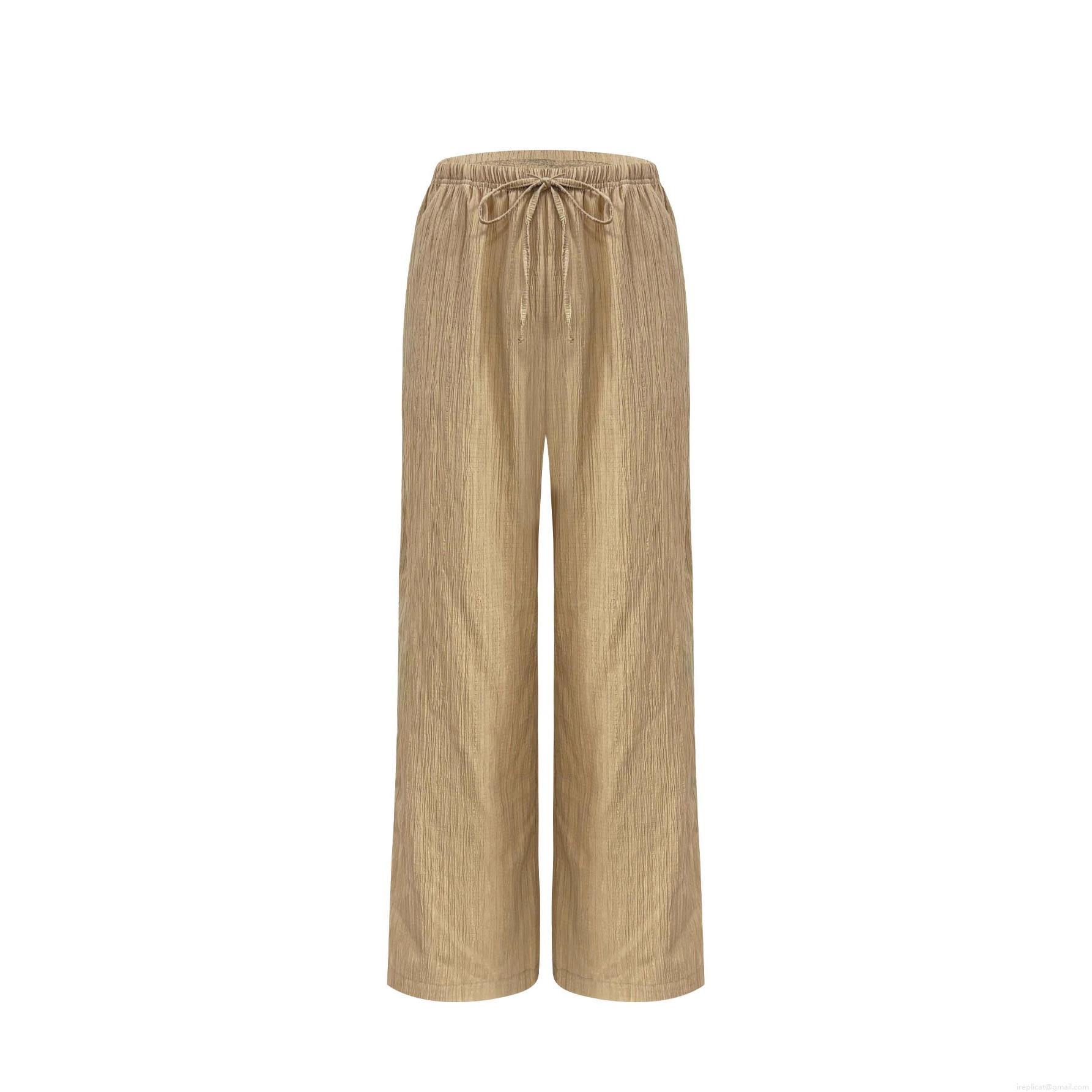 Solid Color, Drawstring, Wide-leg, High-waisted, Pleating Process, Texture Wrinkles