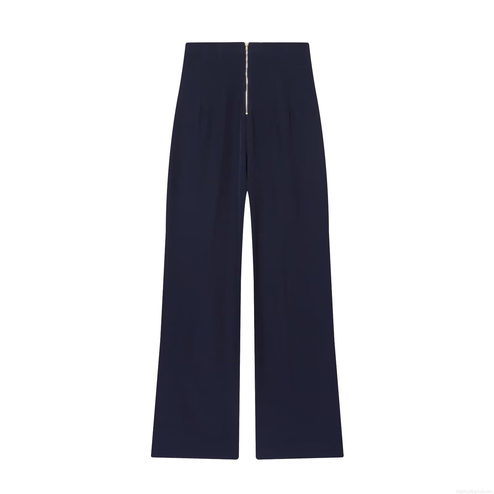 Solid Color, Wide-leg, High-waisted, Metal Zipper, Pleat Details