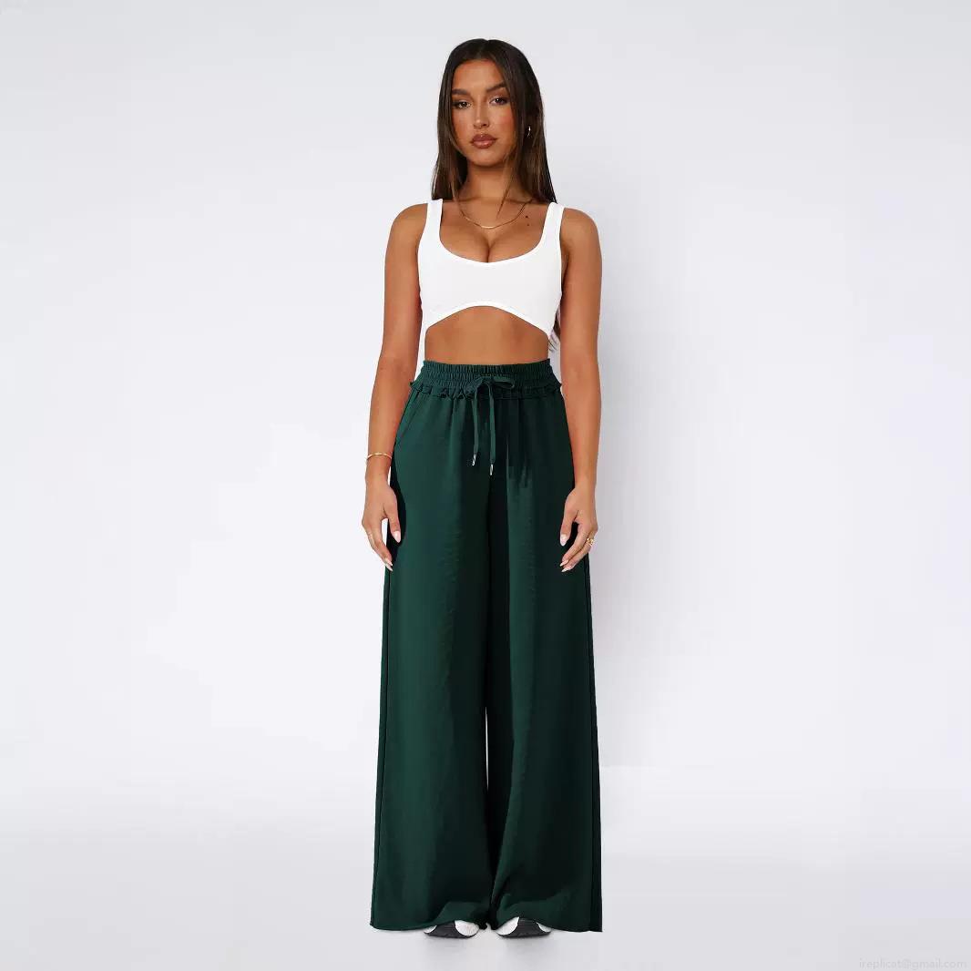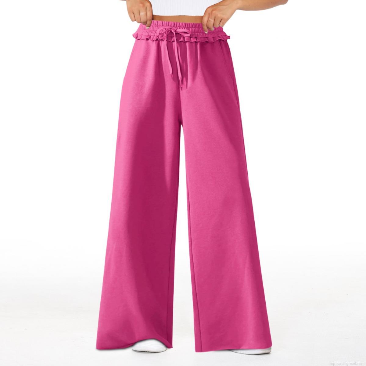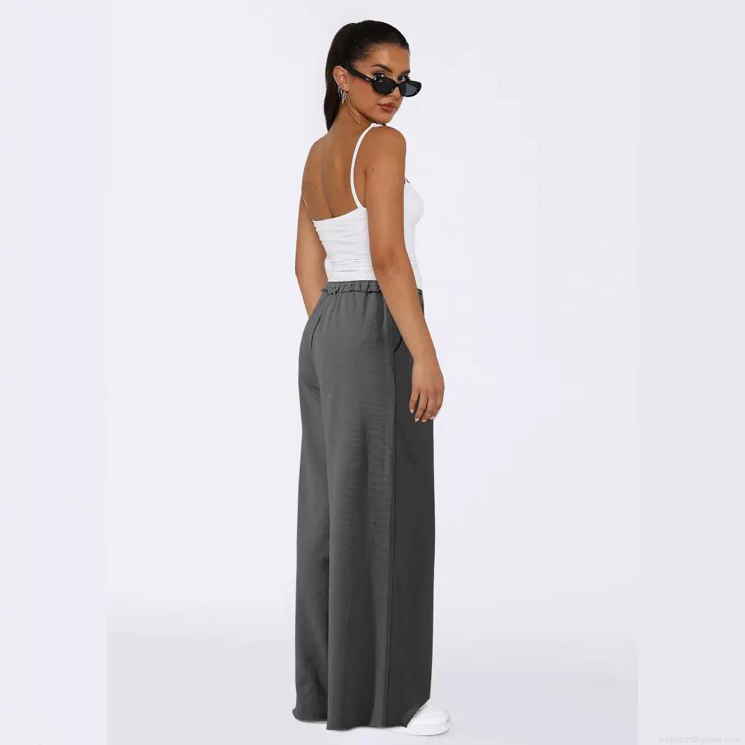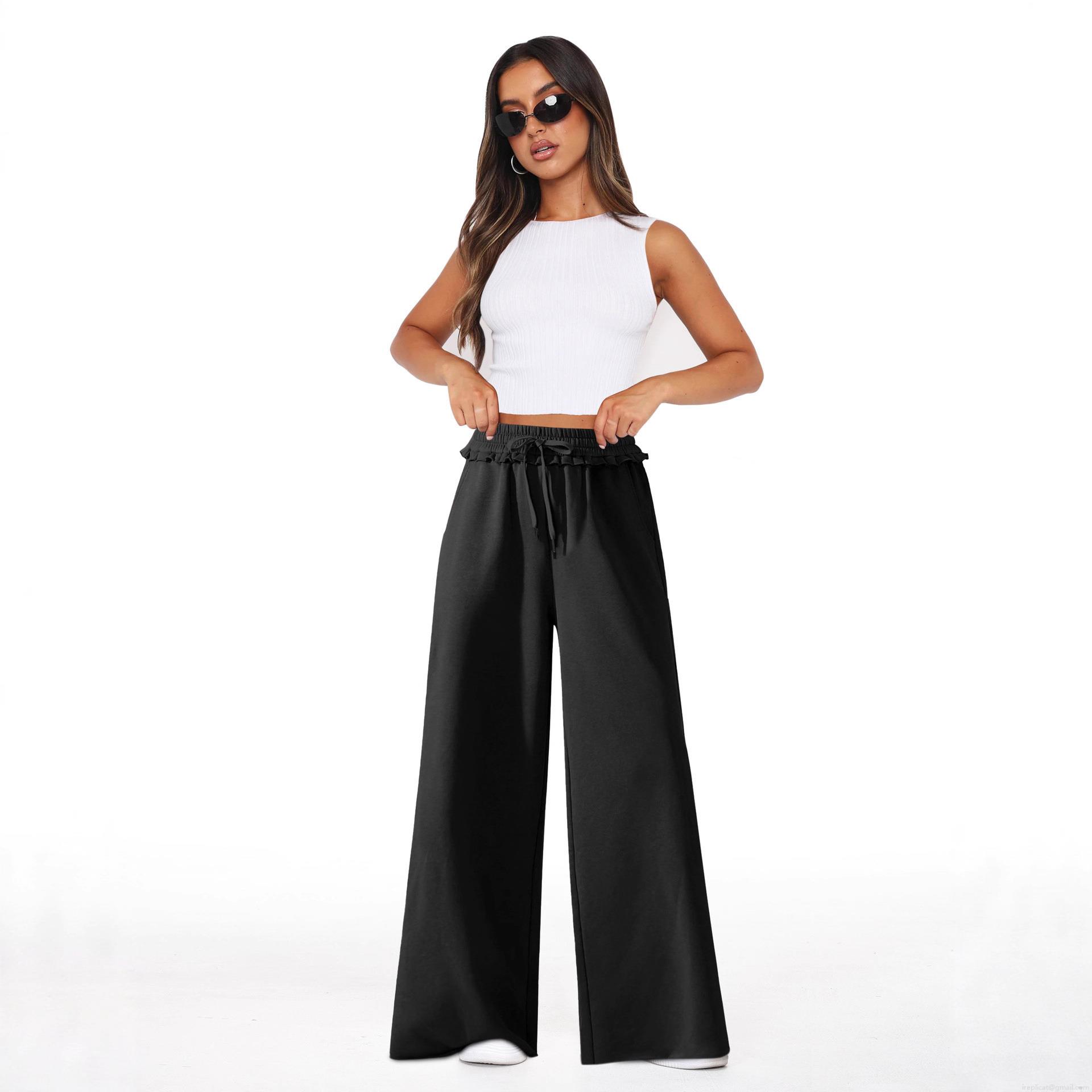 • Women's High Waisted Wide Leg Pants Loose Fit Straight Casual Trousers With Drawstring Tie Ruffle Waist Pockets Summer Flowy Bottoms Polyester Viscose Woven Pants