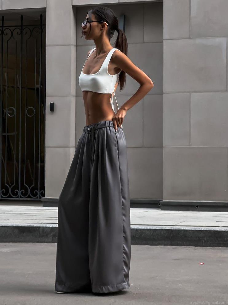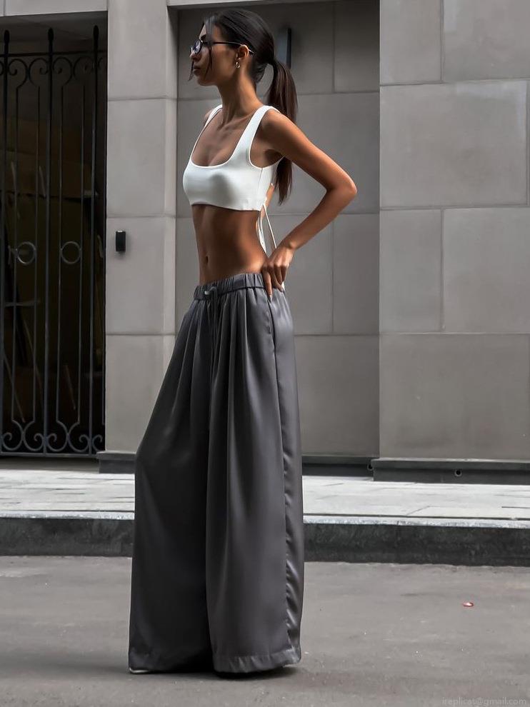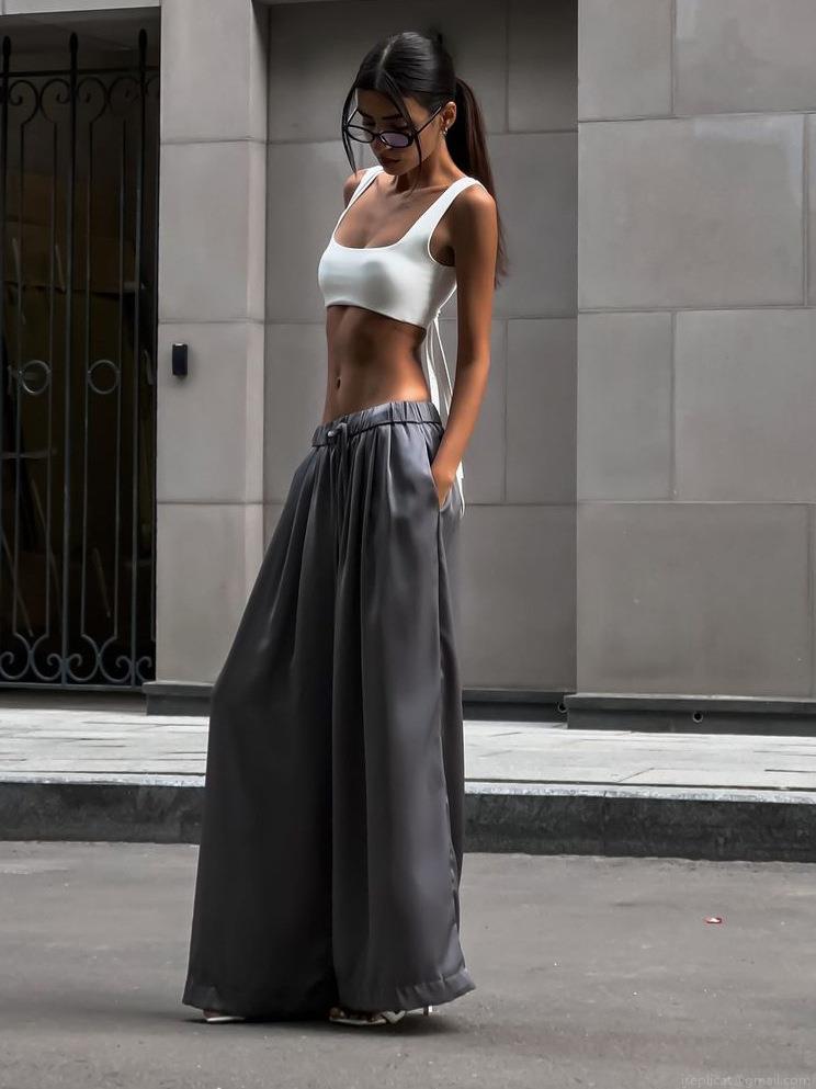 • Women's High Waisted Wide Leg Satin Pants Glossy Cotton Blend Loose Trousers For Streetwear Party Commuter Modern Punk Style Summer