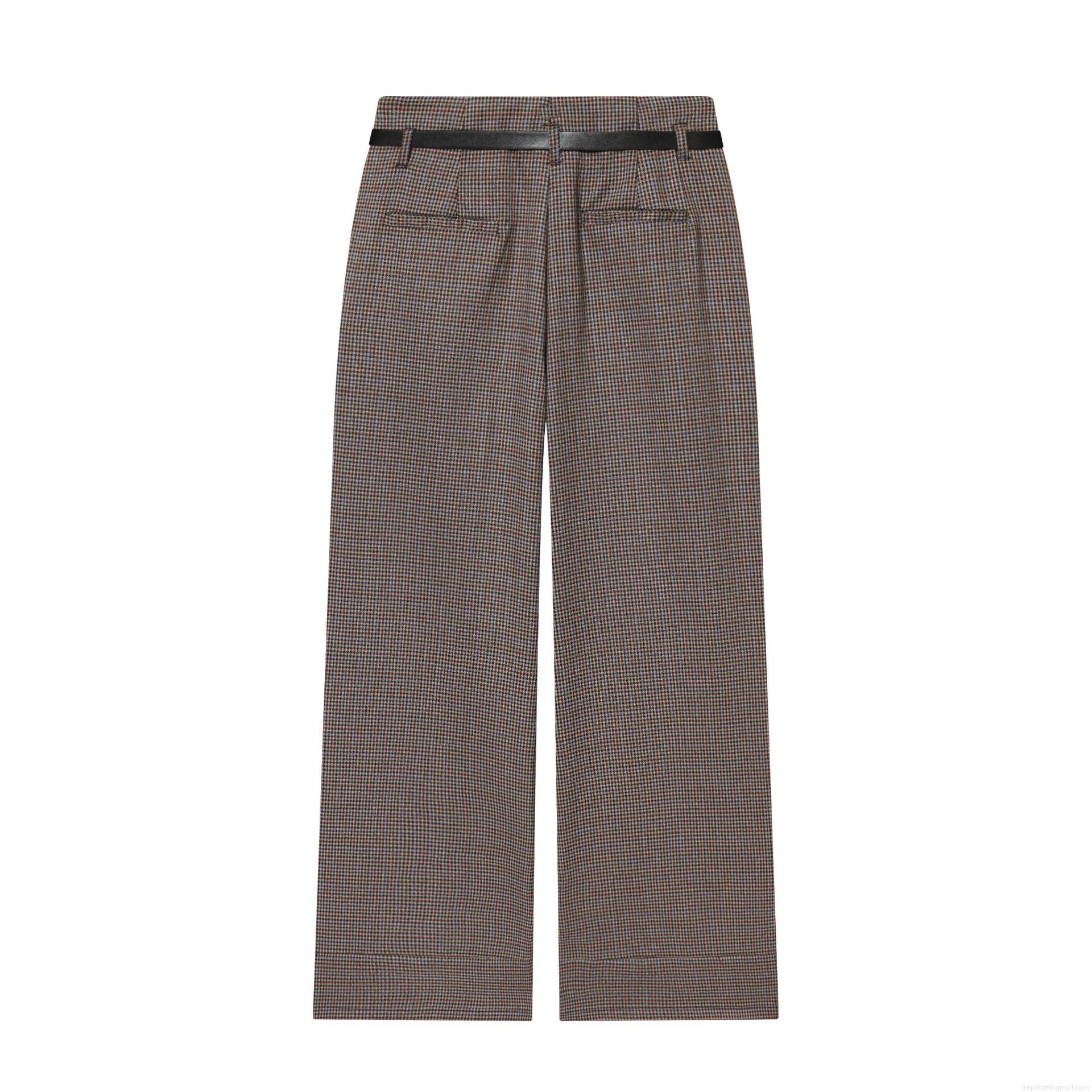 Women's Houndstooth Wide Leg Pants With Black Belt Polyester High Waist Straight Trousers Retro Plaid Bottoms Casual Fashion Clothing For Lady