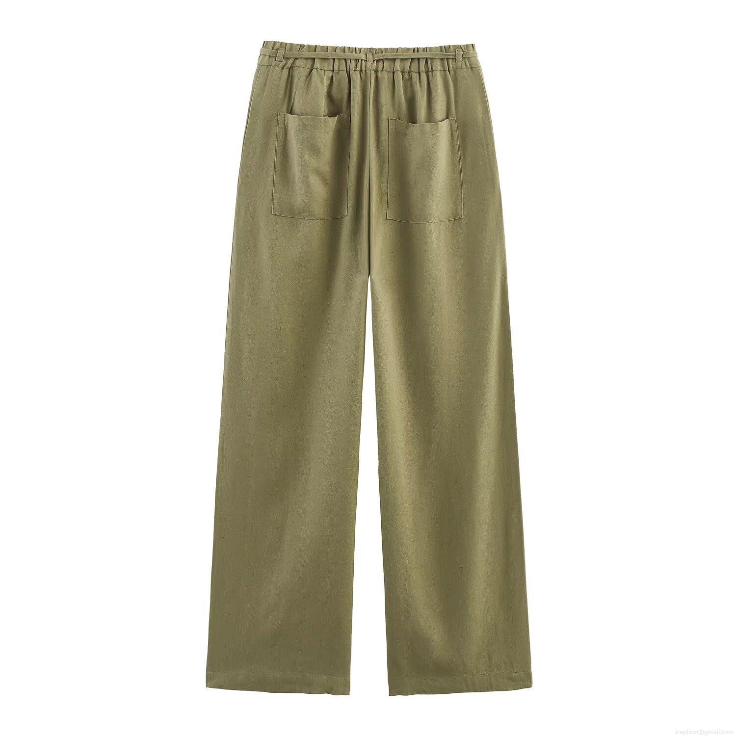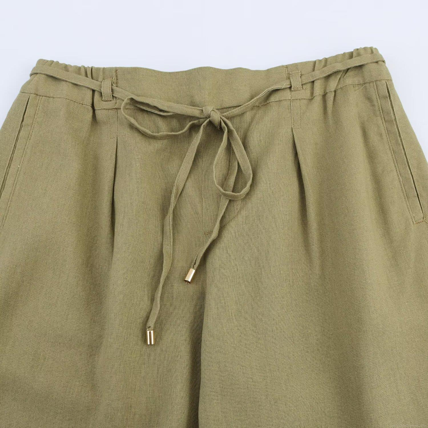 • Women's Linen Wide Leg Pants High Waisted Drawstring Elastic Waist Casual Loose Breathable Solid Color Long Trousers With Pockets For Summer Daily Vacation