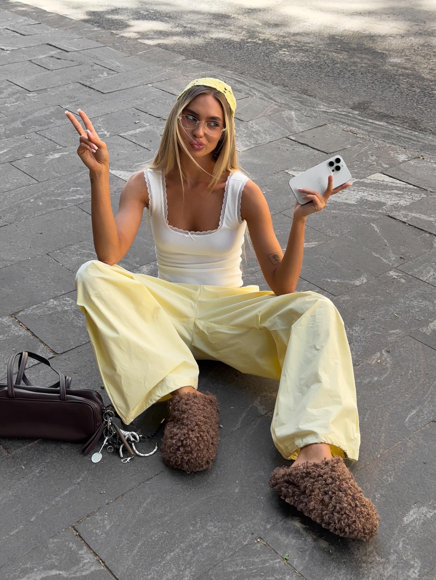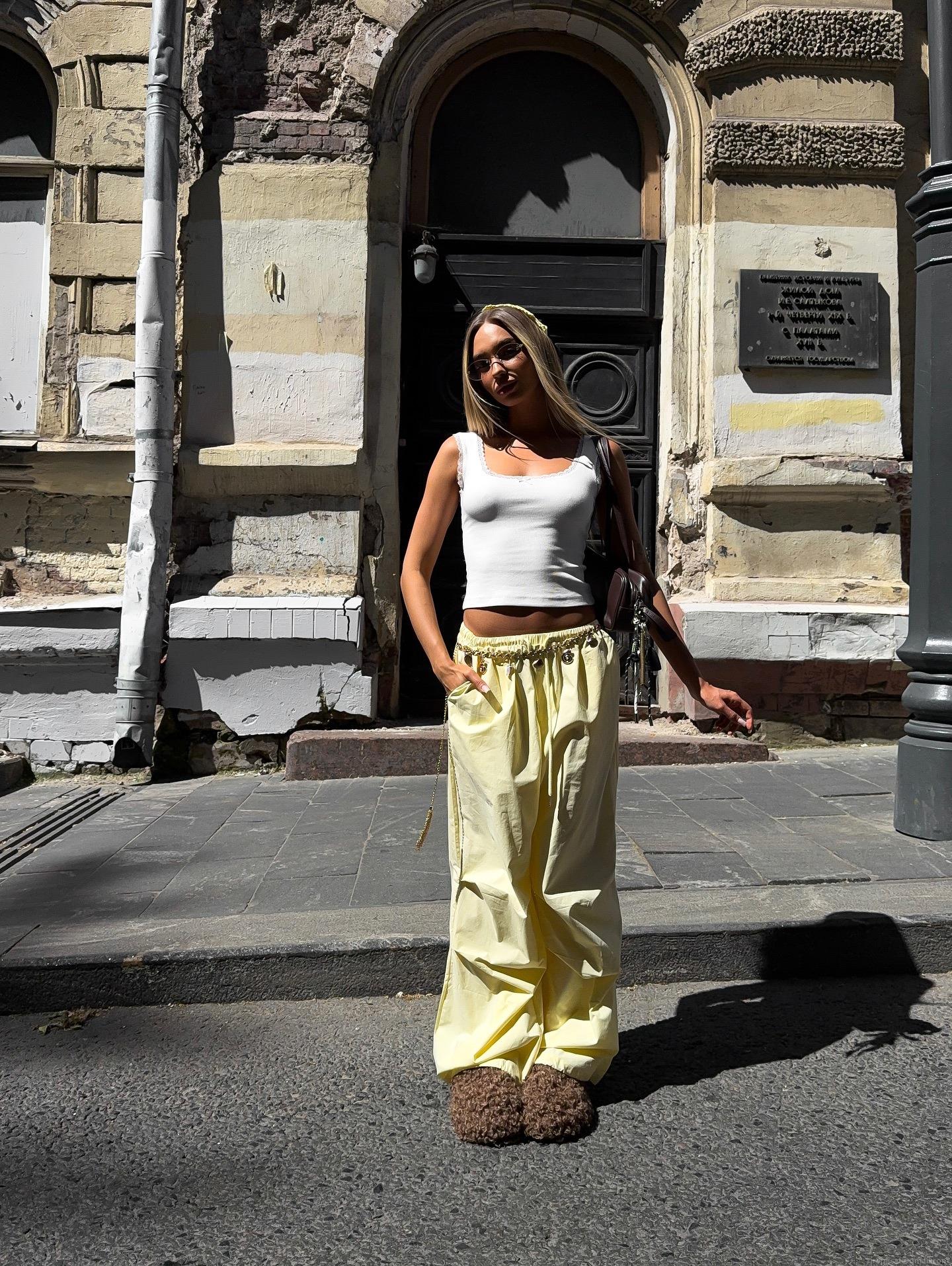 • Women's Loose Parachute Pants Streetwear Wide Leg Elastic Waist Drawstring Multi-Pockets Casual Summer Woven Polyester Trousers For Women Trendy