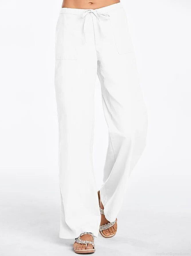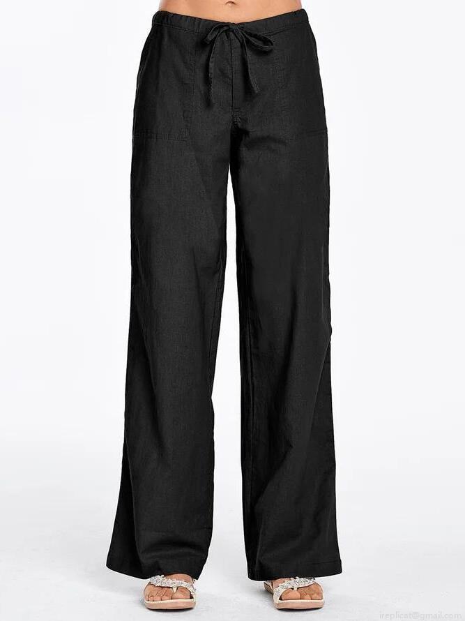 • Women's Loose Wide Leg Pants Cotton Linen Blend High Waist Drawstring Casual Trousers With Pockets Comfortable Breathable Solid Color Spring Summer Pants