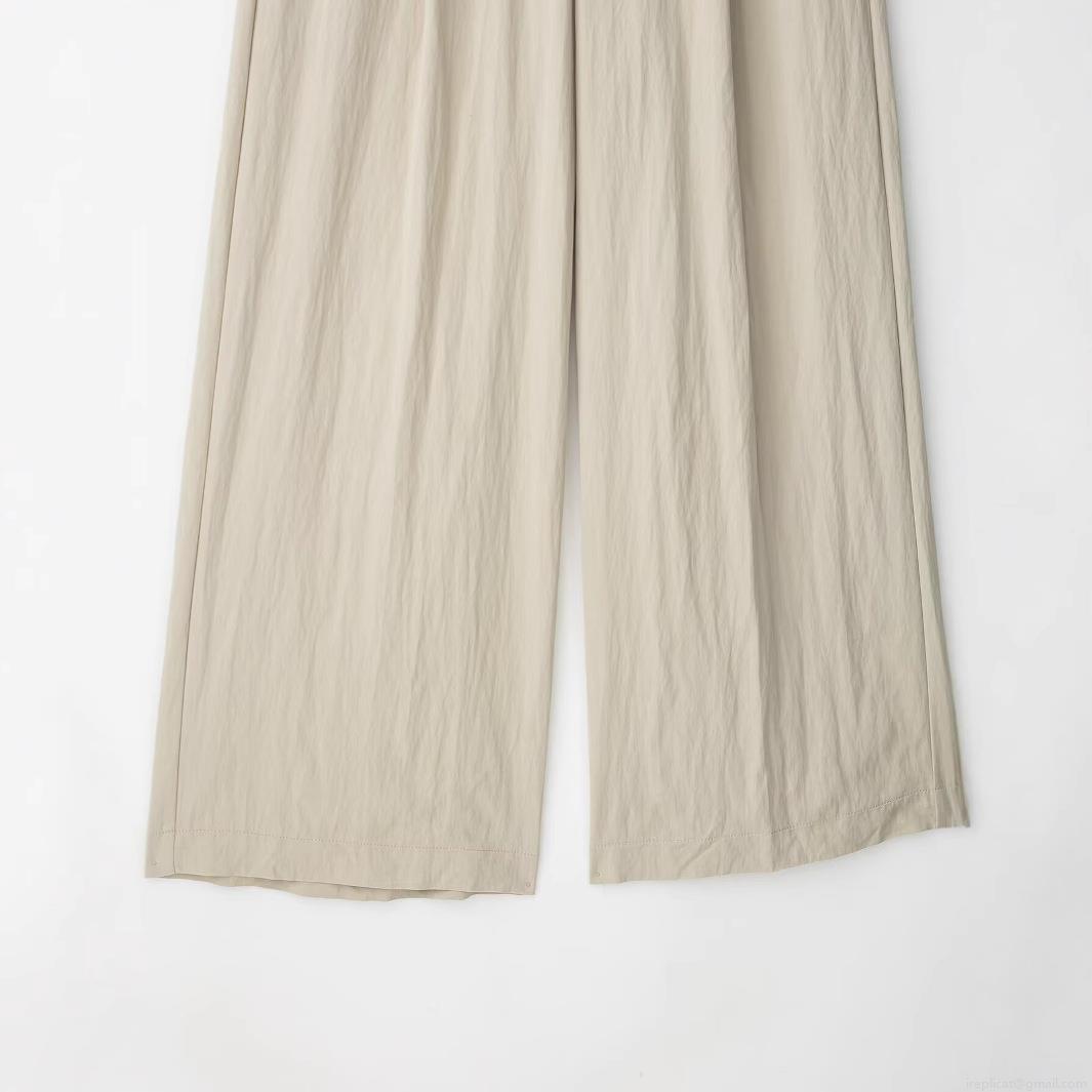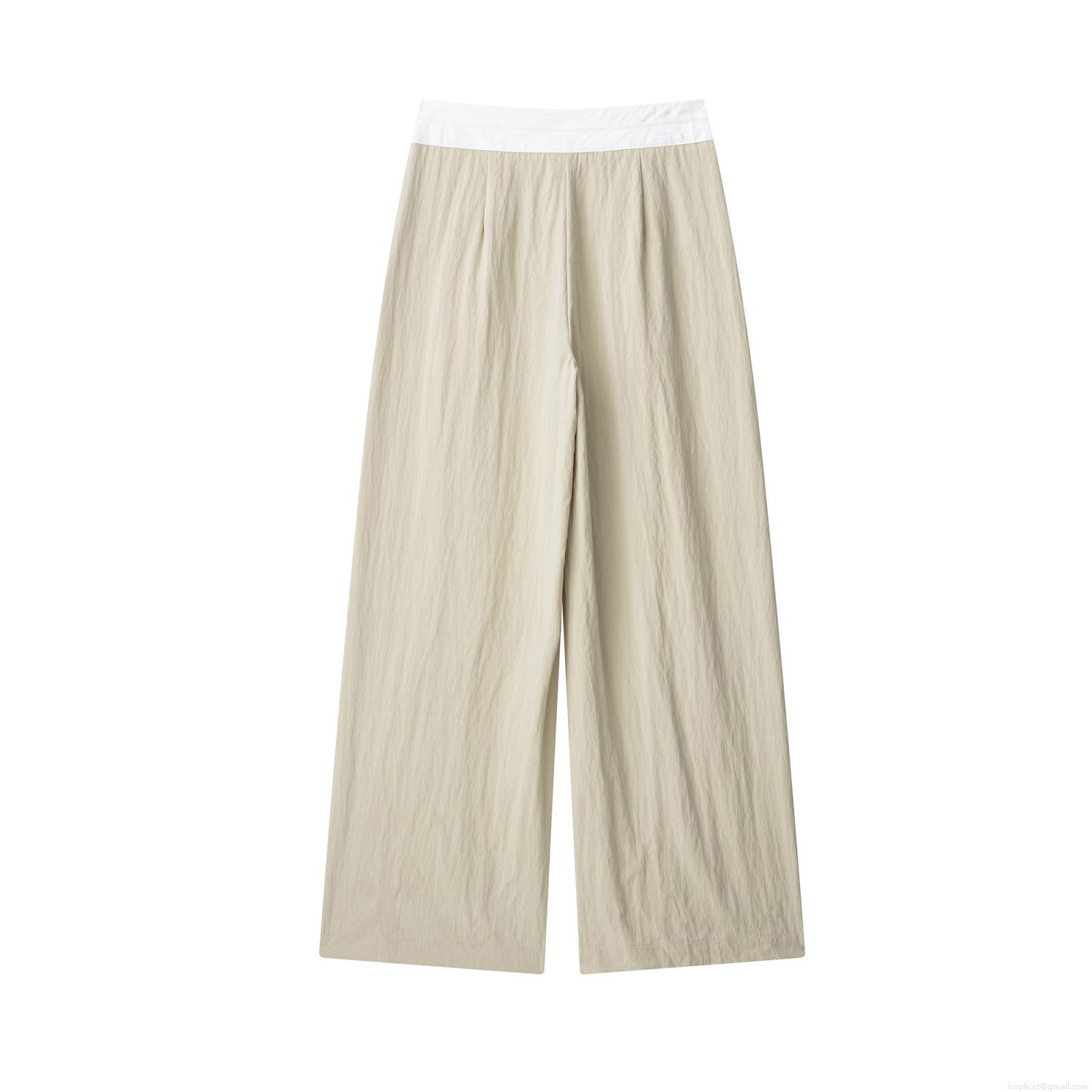 • Women's Loose Wide Leg Pants With Splicing Waistband Casual Low Waist Polyester Trousers For Summer Streetwear Women