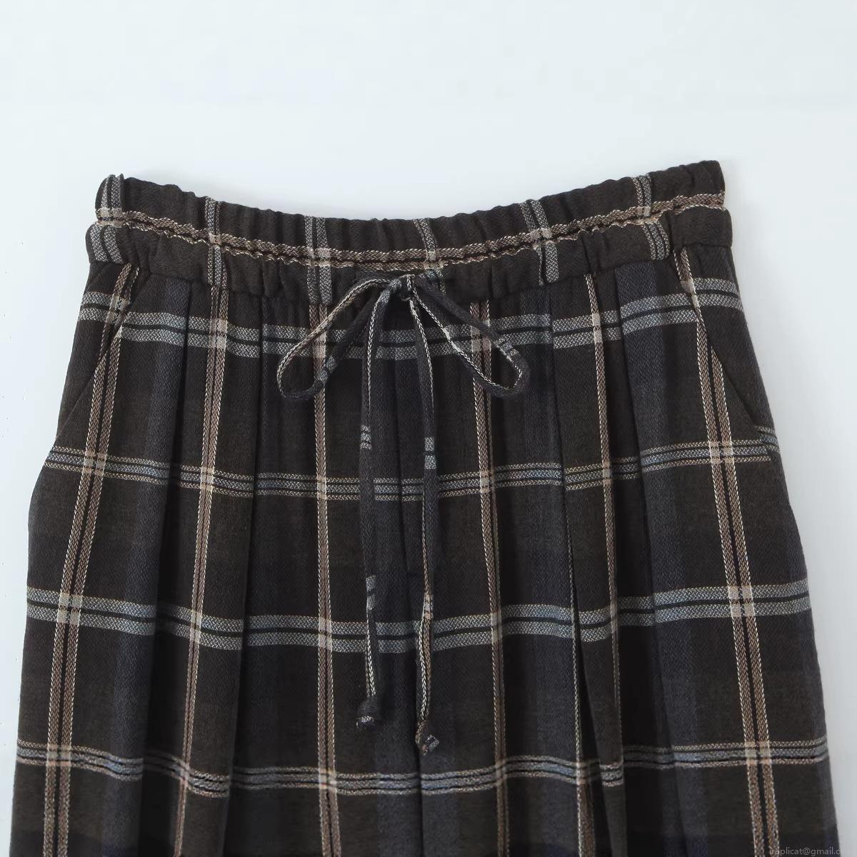 • Women's Plaid High Waist Casual Pants Polyester Drawstring Elastic Waist Tapered Trousers For Daily Fashion Grey Grid Loose Pants