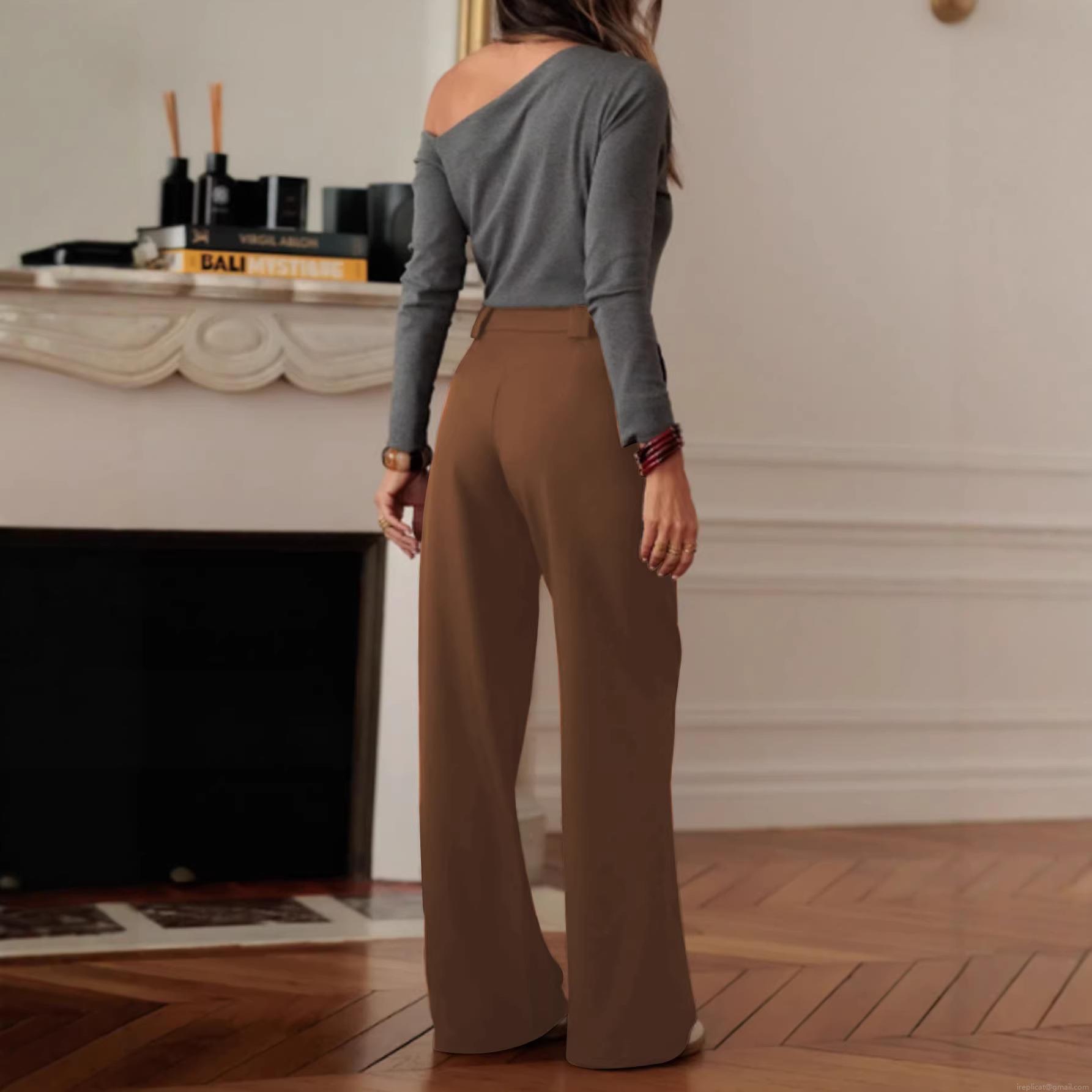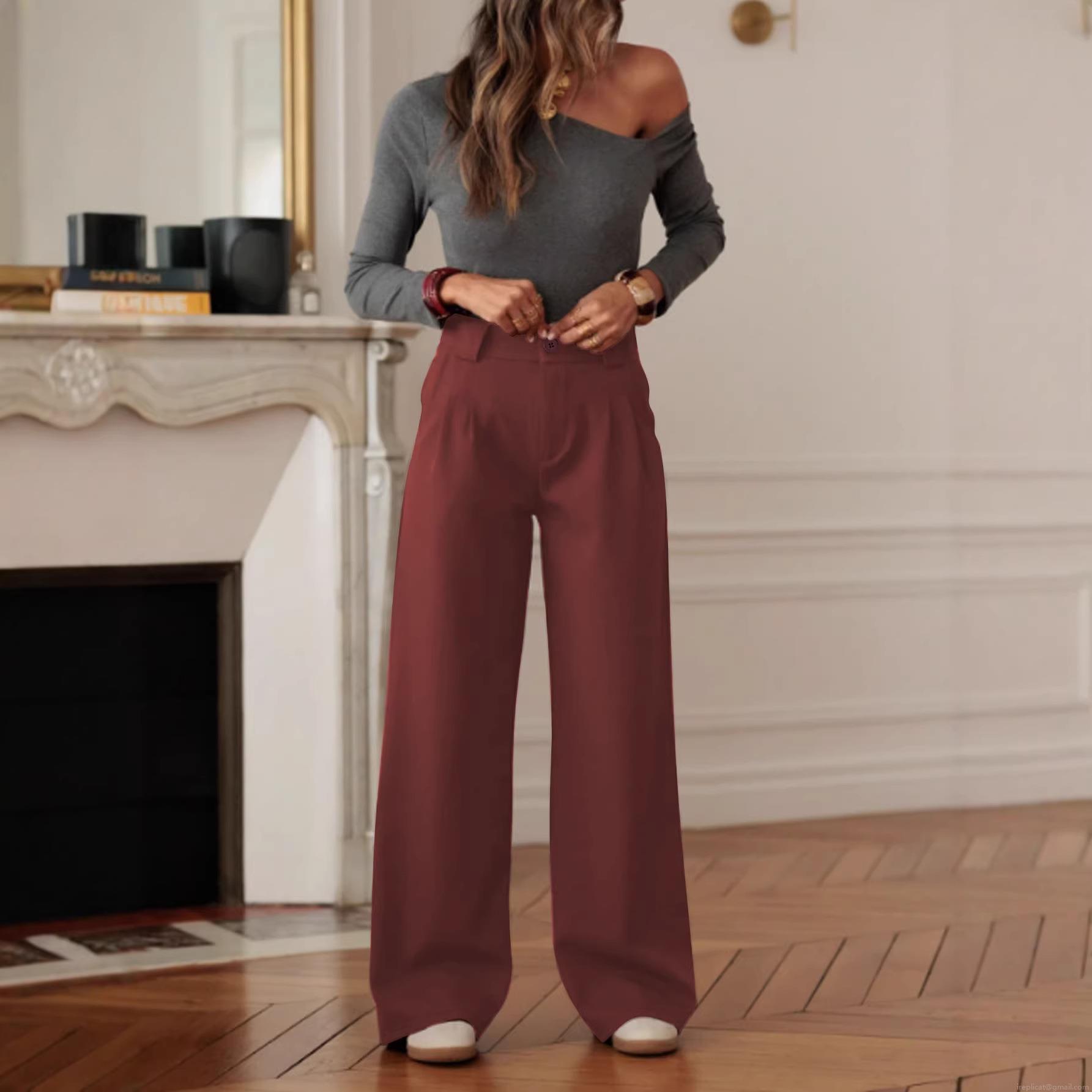• Women's Plus Size High Waist Wide Leg Suit Pants Elegant Solid Color Loose Straight Trousers For Office Commuting Daily Wear Polyester Spandex Soft Drape Pants