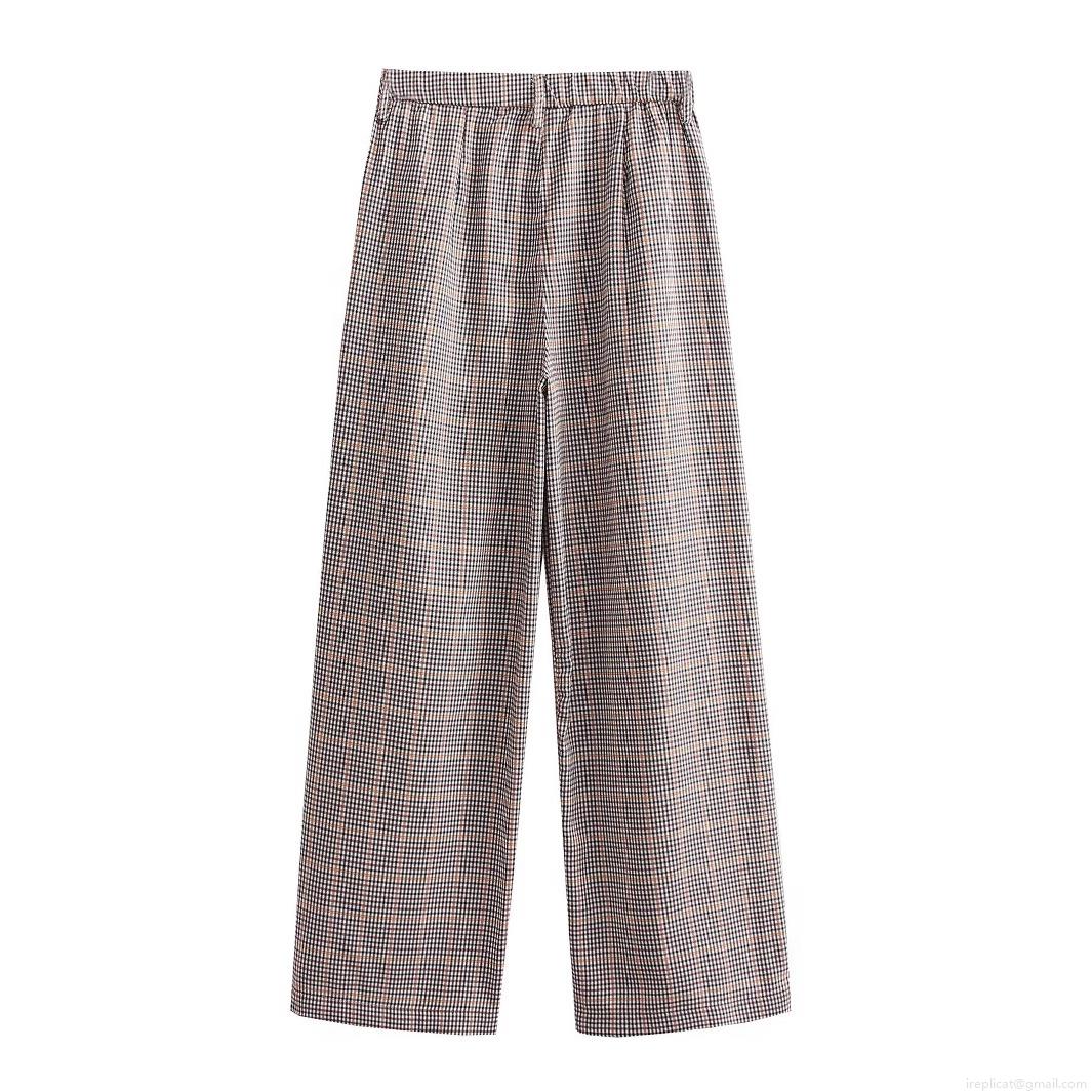 • Women's Retro High Waist Plaid Wide Leg Pants Casual Woven Polyester Full Length Trousers Retro British Style Plaid Straight Trousers For Daily Streetwear