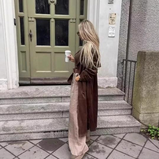 Solid Color, High-waisted Design, Metal Buckle Belt, Wide Leg Design