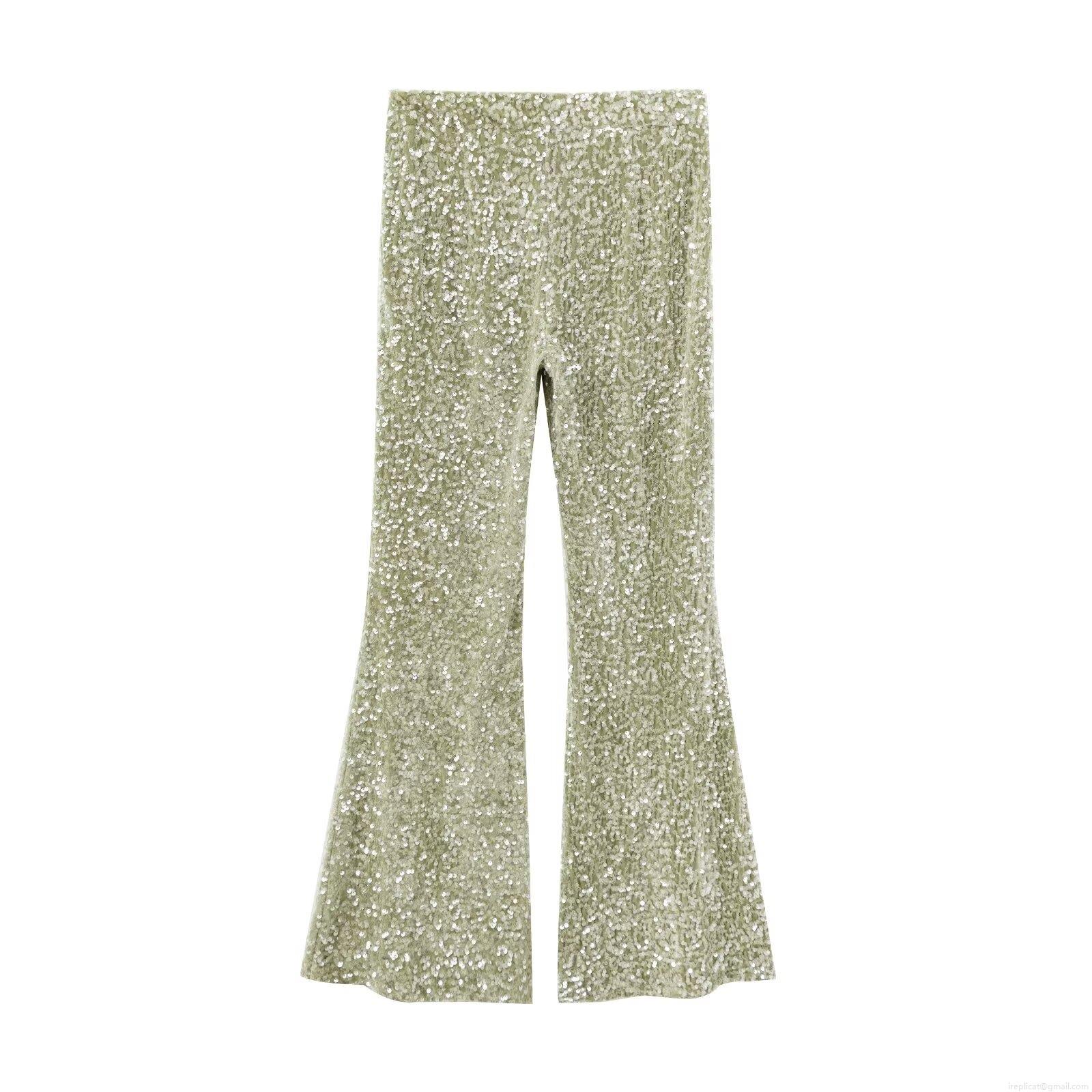 High-waisted, Glitter Texture, Full-page Sequins, Flared Mouth Design