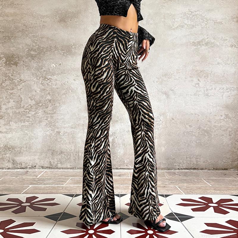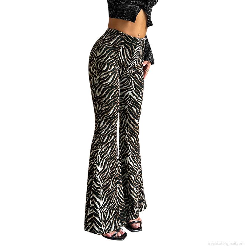 • Women's Sexy Animal Print Flared Pants Rhinestone Zebra Tiger Pattern High Waist Bell Bottoms Polyester Spandex Flaring Trousers Streetwear