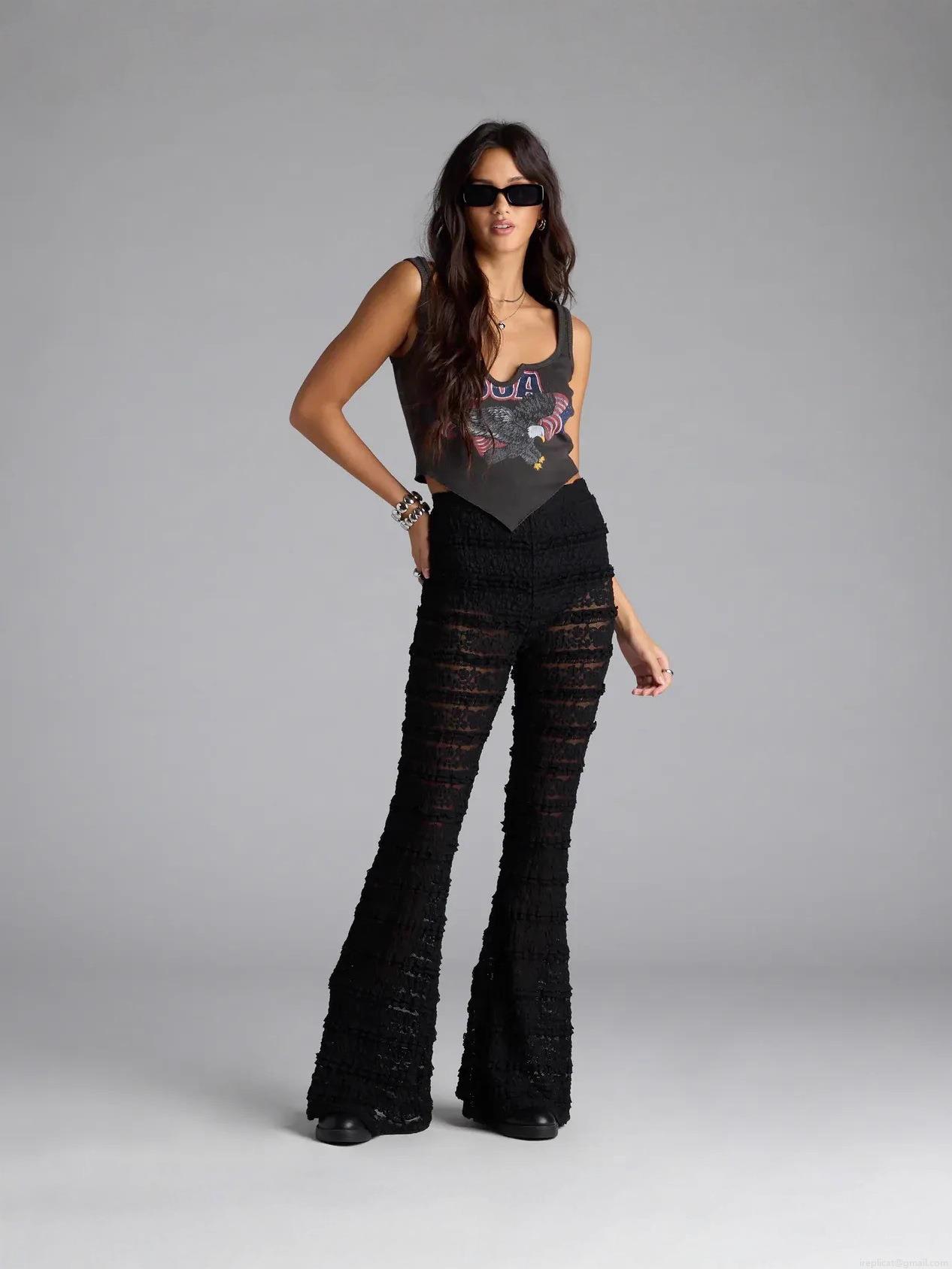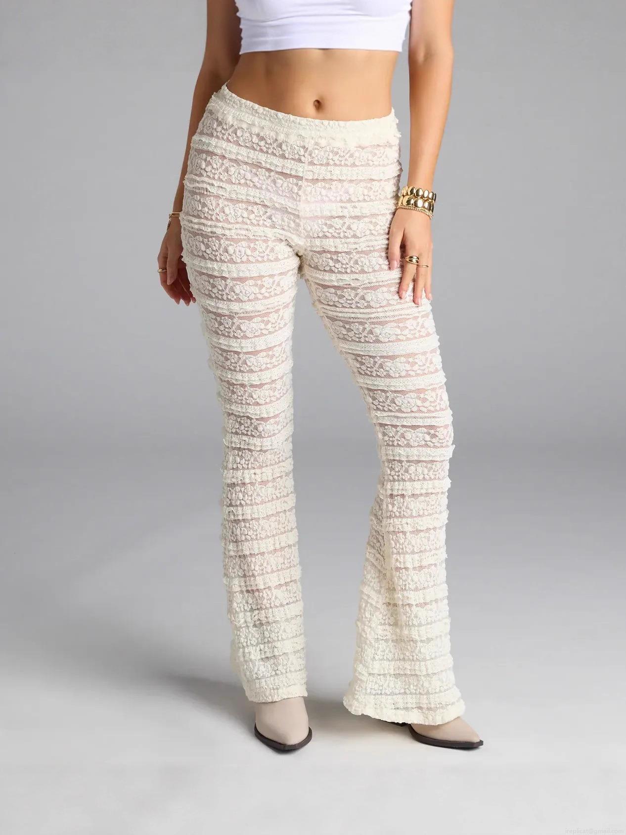 • Women's Sexy Lace Hollow Out Flare Pants Sheer Low Waist Bell-bottom Trousers for Vacation Streetwear Polyester Spandex Long Pants