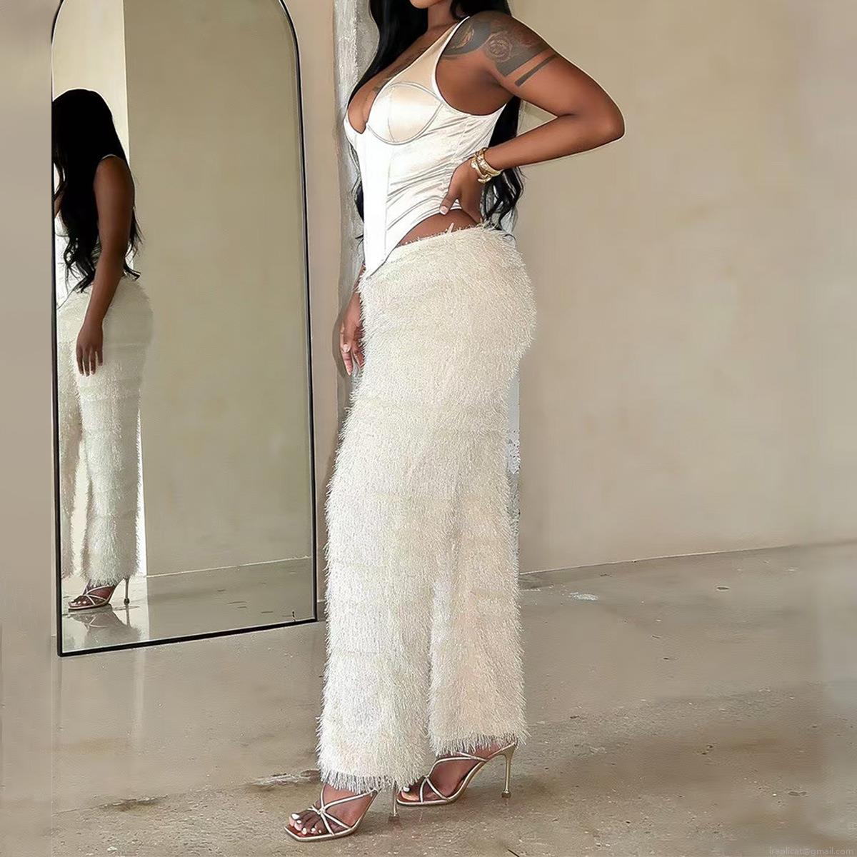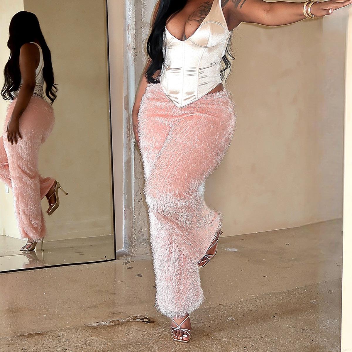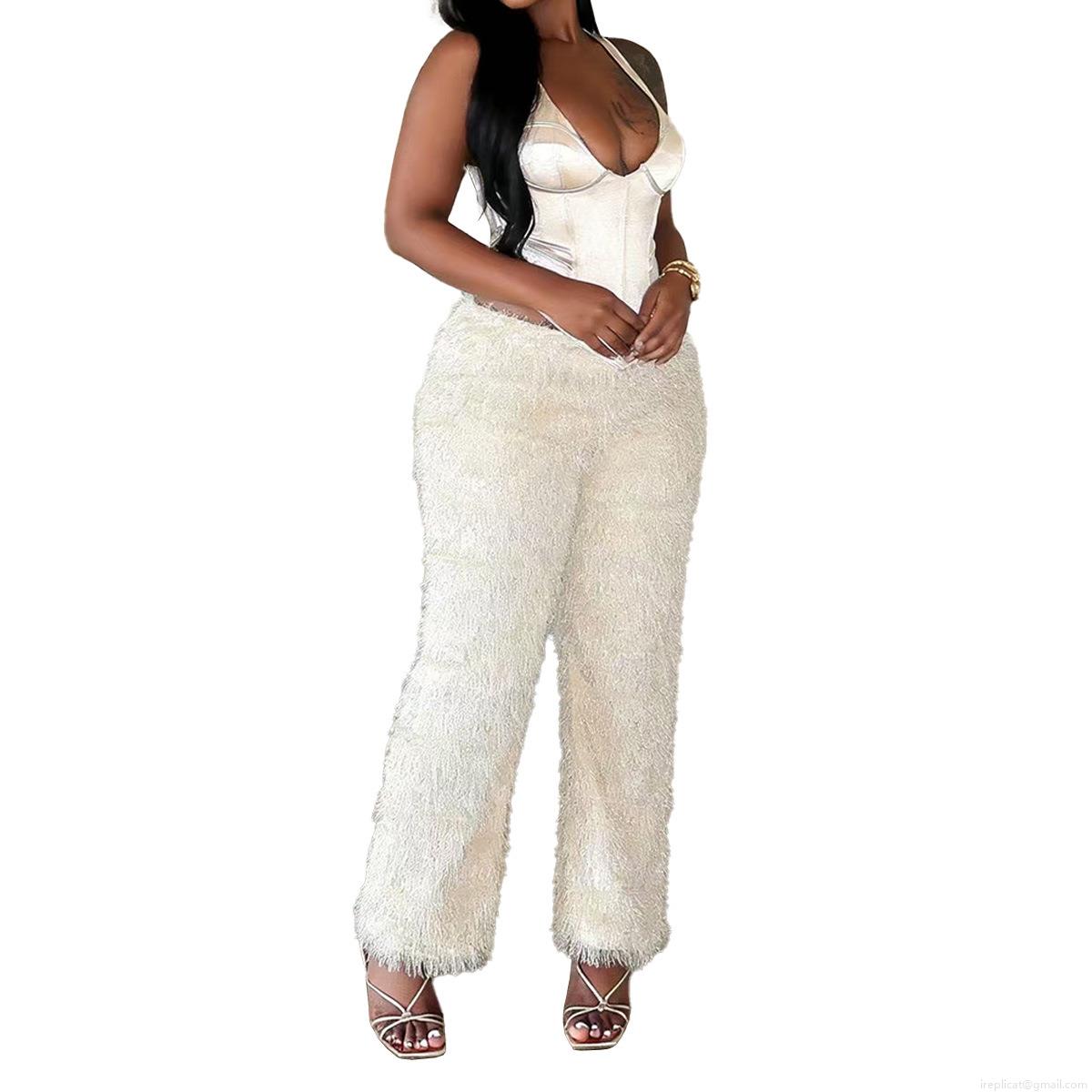 • Women's Sexy Leopard Print Plush Wide Leg Pants Casual Low Waist Stretchy Faux Fur Cropped Trousers For Streetwear Party Daily Wear Polyester Spandex