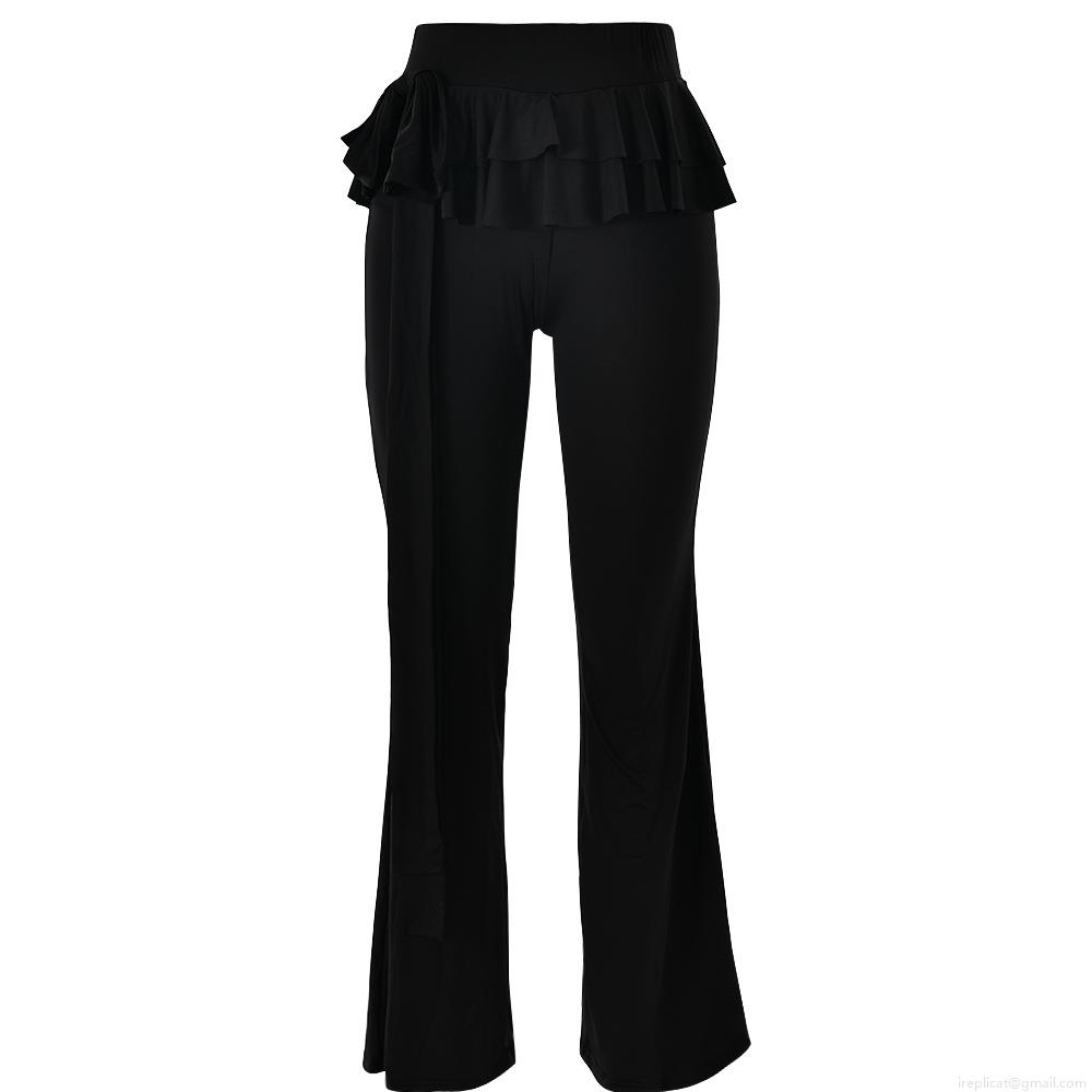 • Women's Sexy Ruffle Flare Pants Bandage Bell Bottom Trousers Milk Silk Slim Fit Long Leggings Streetwear Party Clubwear Solid Color