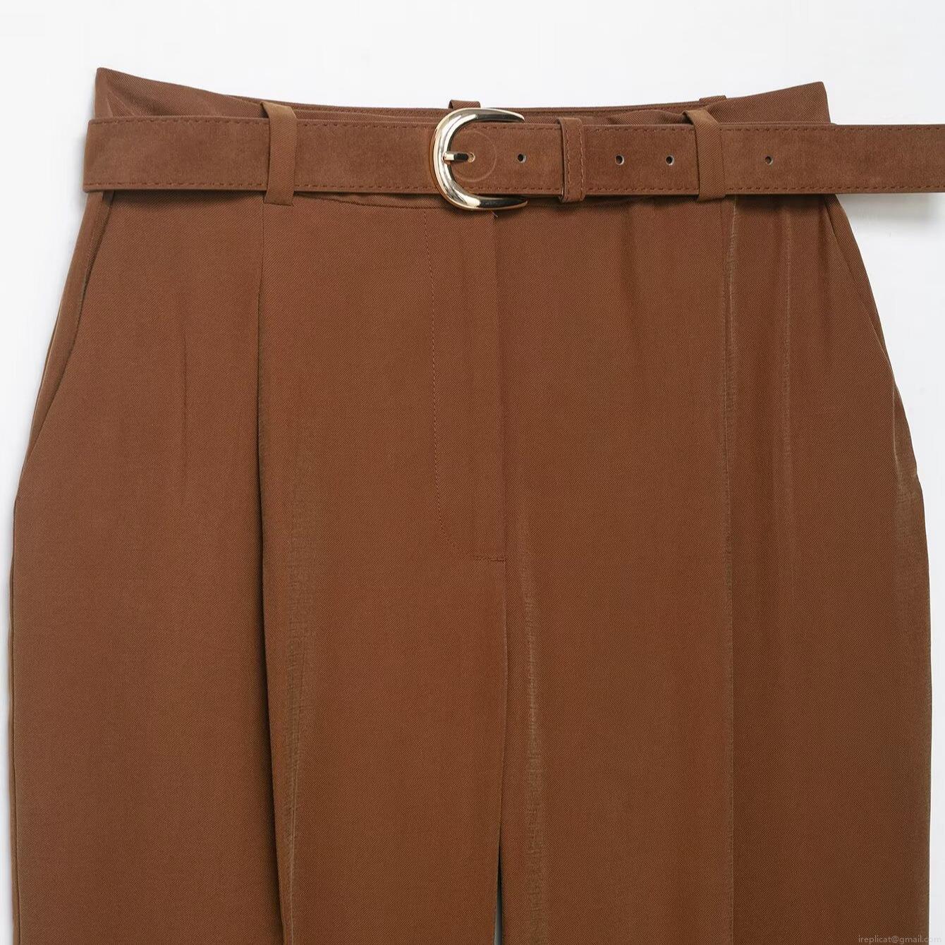 • Women's Smart Casual High Waisted Tapered Pants With Metal Buckle Belt Pleated Solid Color Polyester Trousers For Office Daily