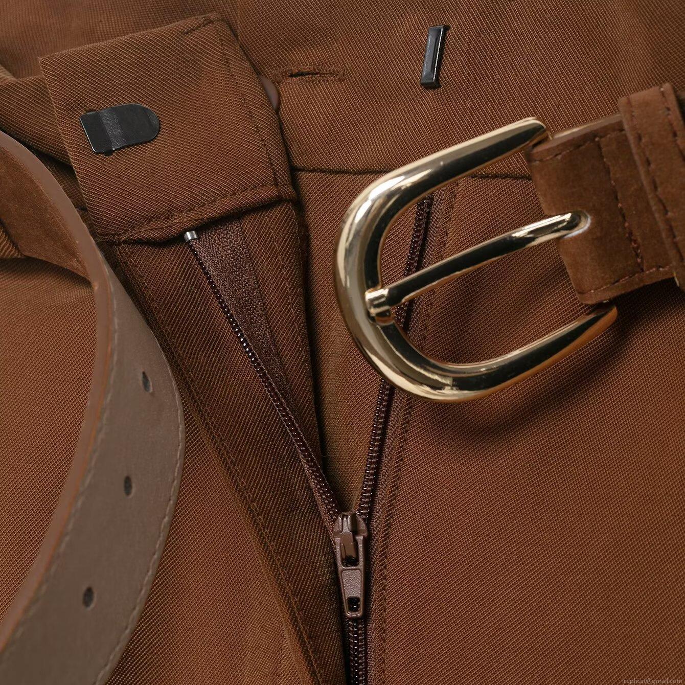 Solid Color, Splice, Pleats, Metal Buckle Belt