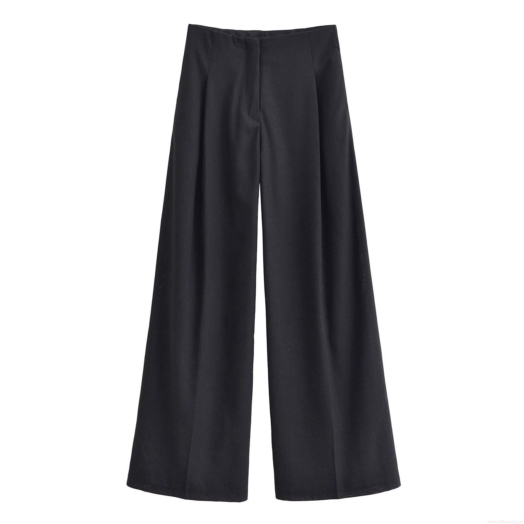• Women's Solid Color Pleated Wide Leg Pants 100% Polyester Casual Mid Waist Loose Trousers For Daily Streetwear Office Commute Autumn Fashion