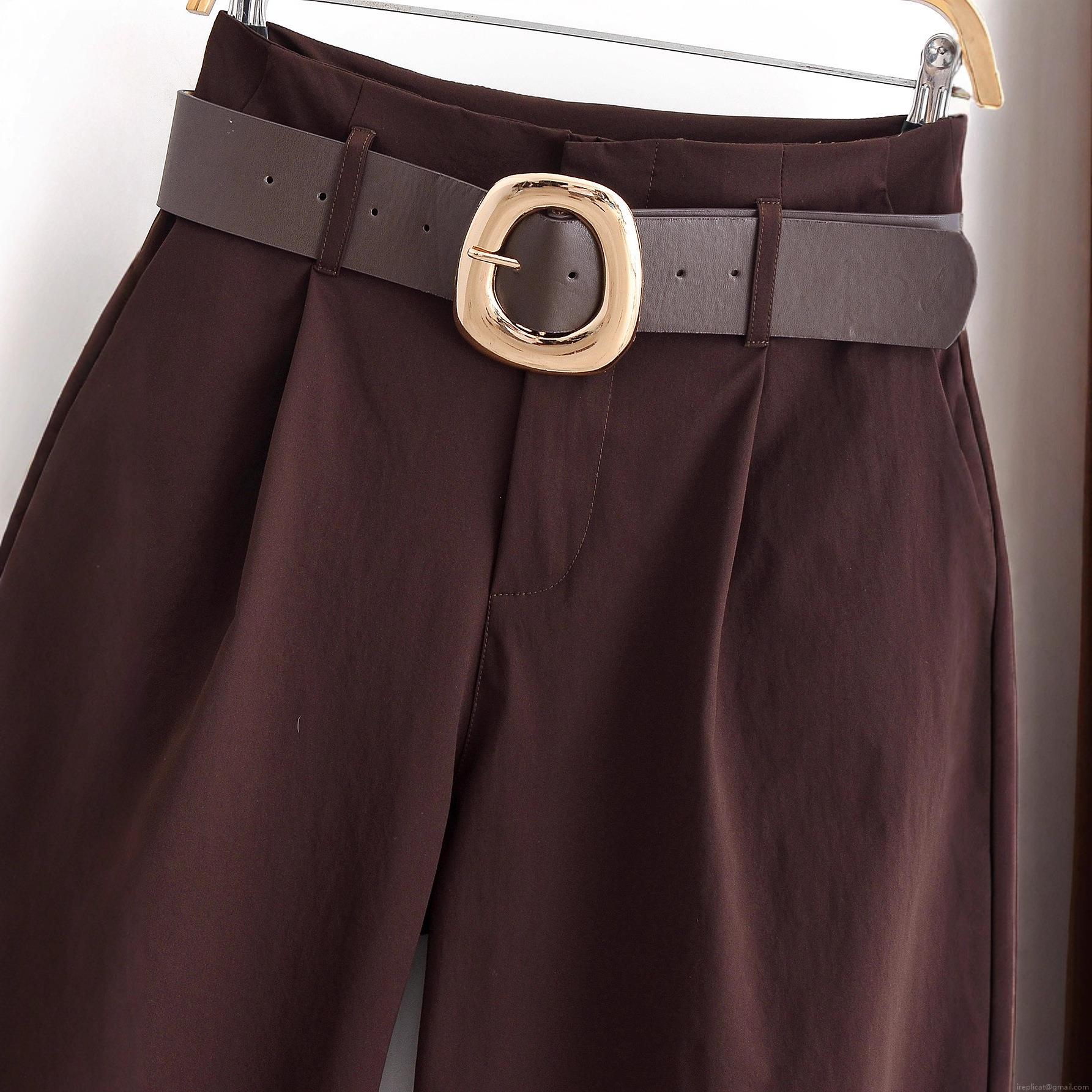 • Women's Solid Color Wide Leg Pants 100% Polyester High Waisted Trousers With Faux Leather Belt Loose Fit Straight Casual Long Pants For Office Work Daily Wear