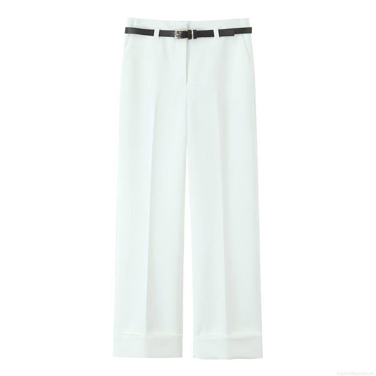 • Women's Straight Leg Casual Trousers With Belt Polyester Thin Summer Office Commute Street Style Long Pants For Women Solid Color Elegant Suit Pants