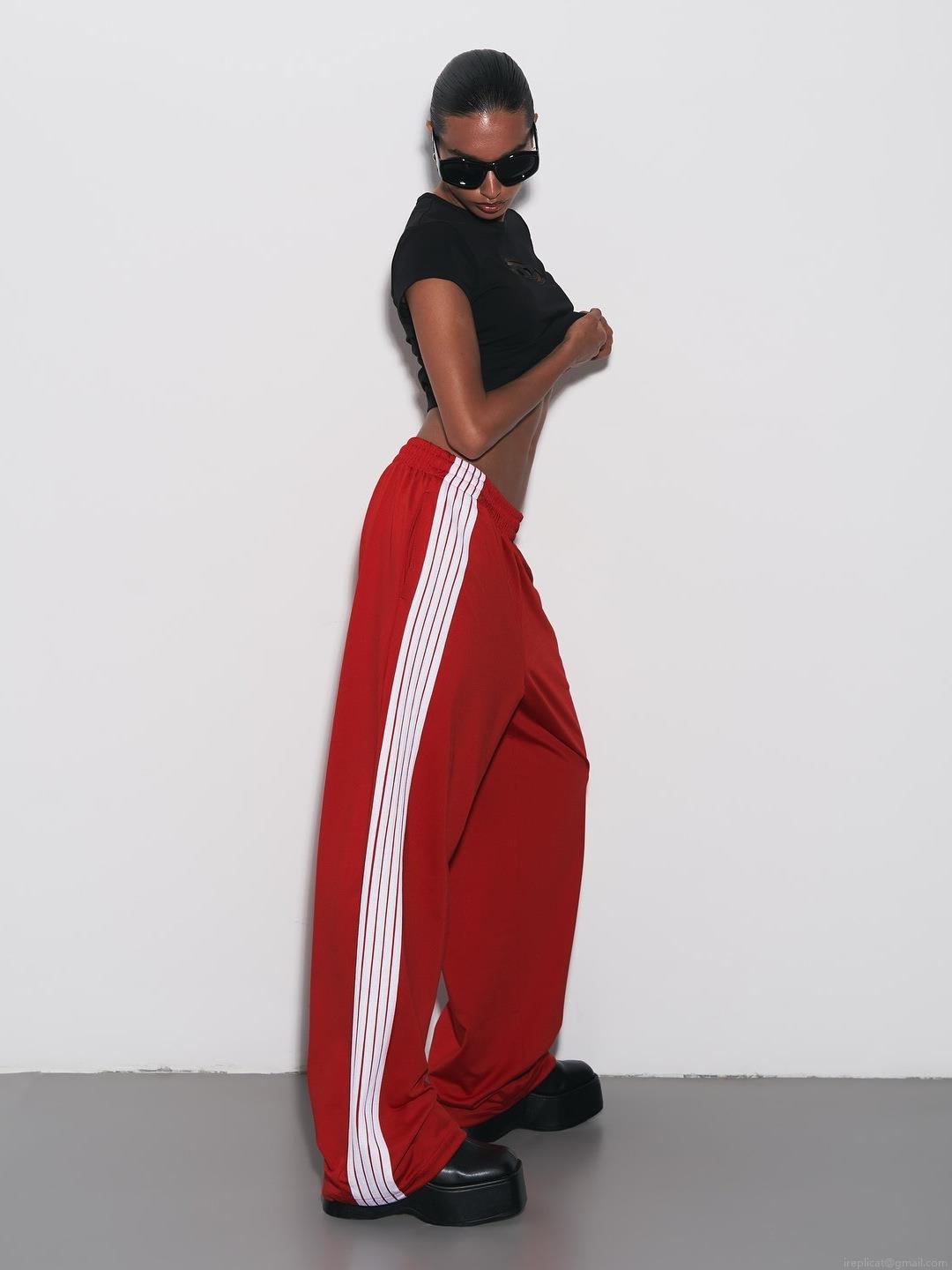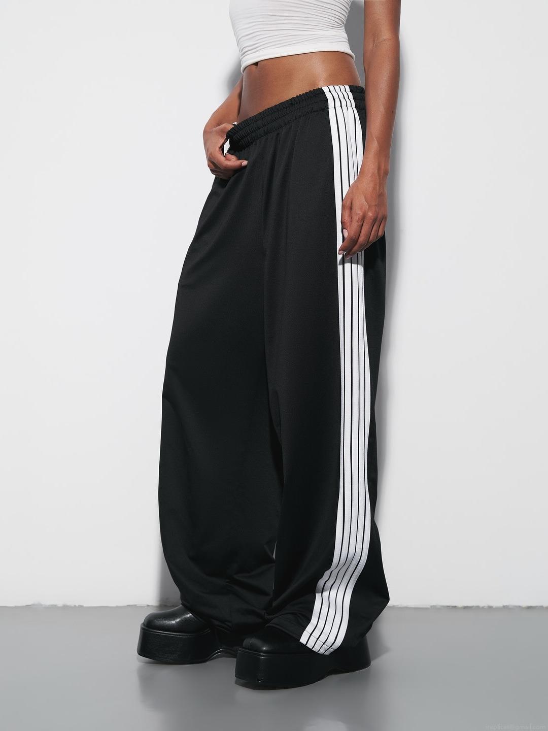 • Women's Striped Casual Wide Leg Pants Cotton Blend Loose Side Stripe Sweatpants Elastic High Waist Streetwear Trousers for Women