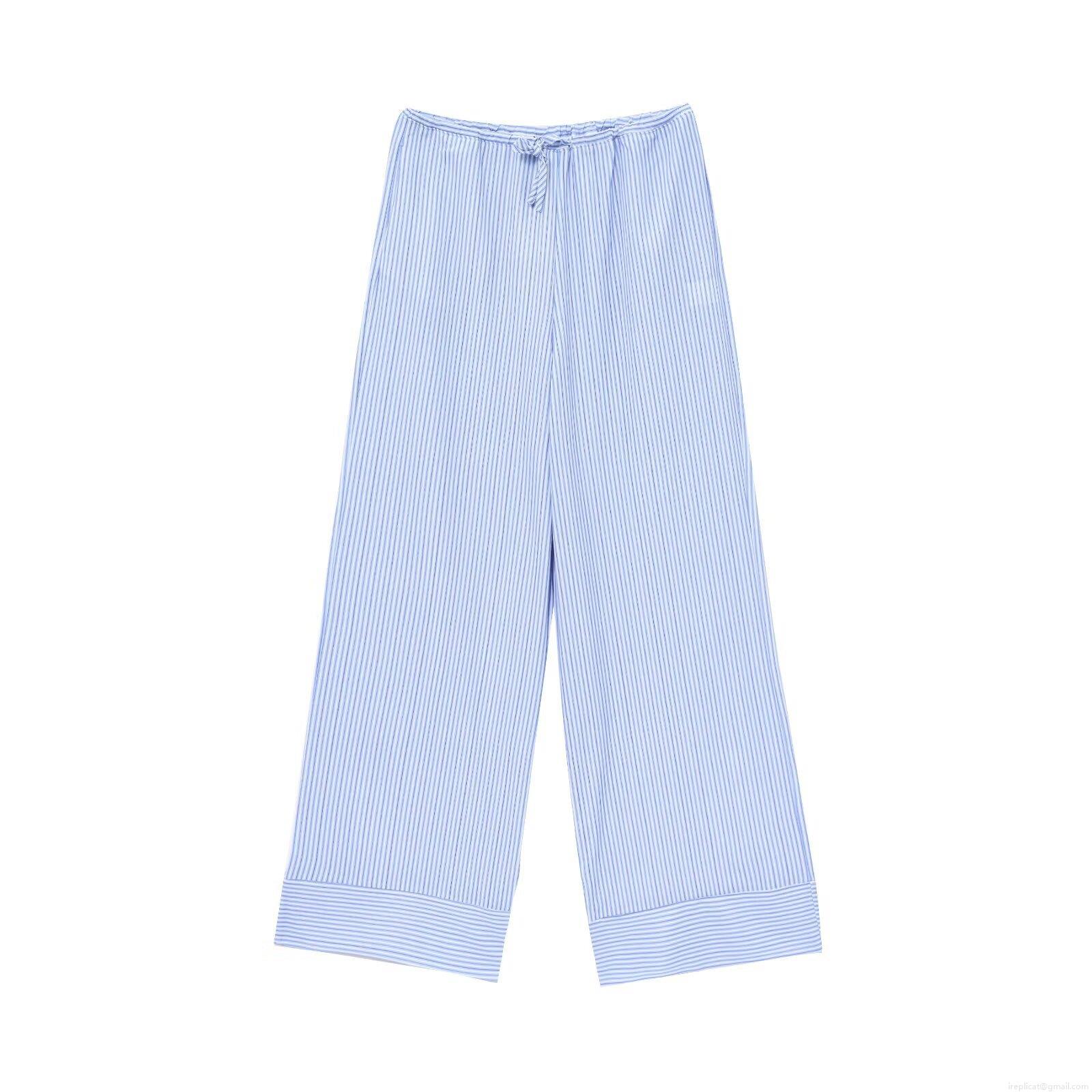 • Women's Striped Wide Leg Pants Drawstring Mid Waist Polyester Trousers Casual Summer Streetwear Long Pants