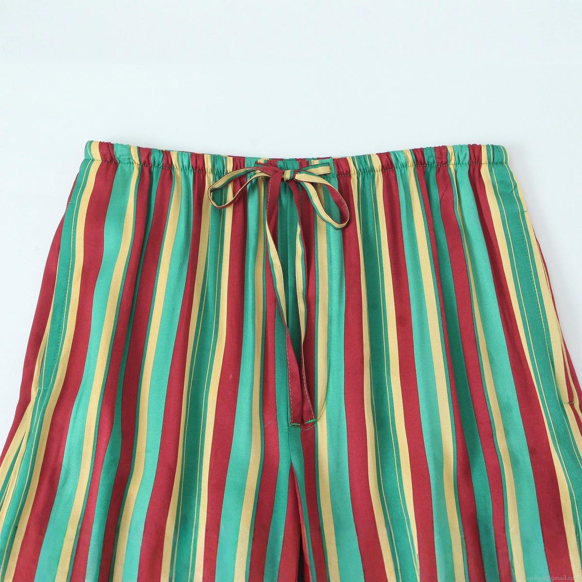 • Women's Striped Wide Leg Pants Satin Finish Multicolor Polyester Pajama Style Trousers with Drawstring Elastic Waist Casual Streetwear for Autumn