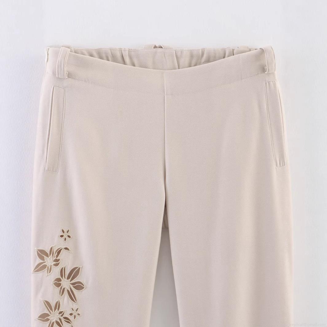 • Women's Summer Loose Casual Flare Pants Embroidery Hollow Out Polyester Beige Wide Leg Trousers For Daily Vacation Street Style Ladies Comfortable