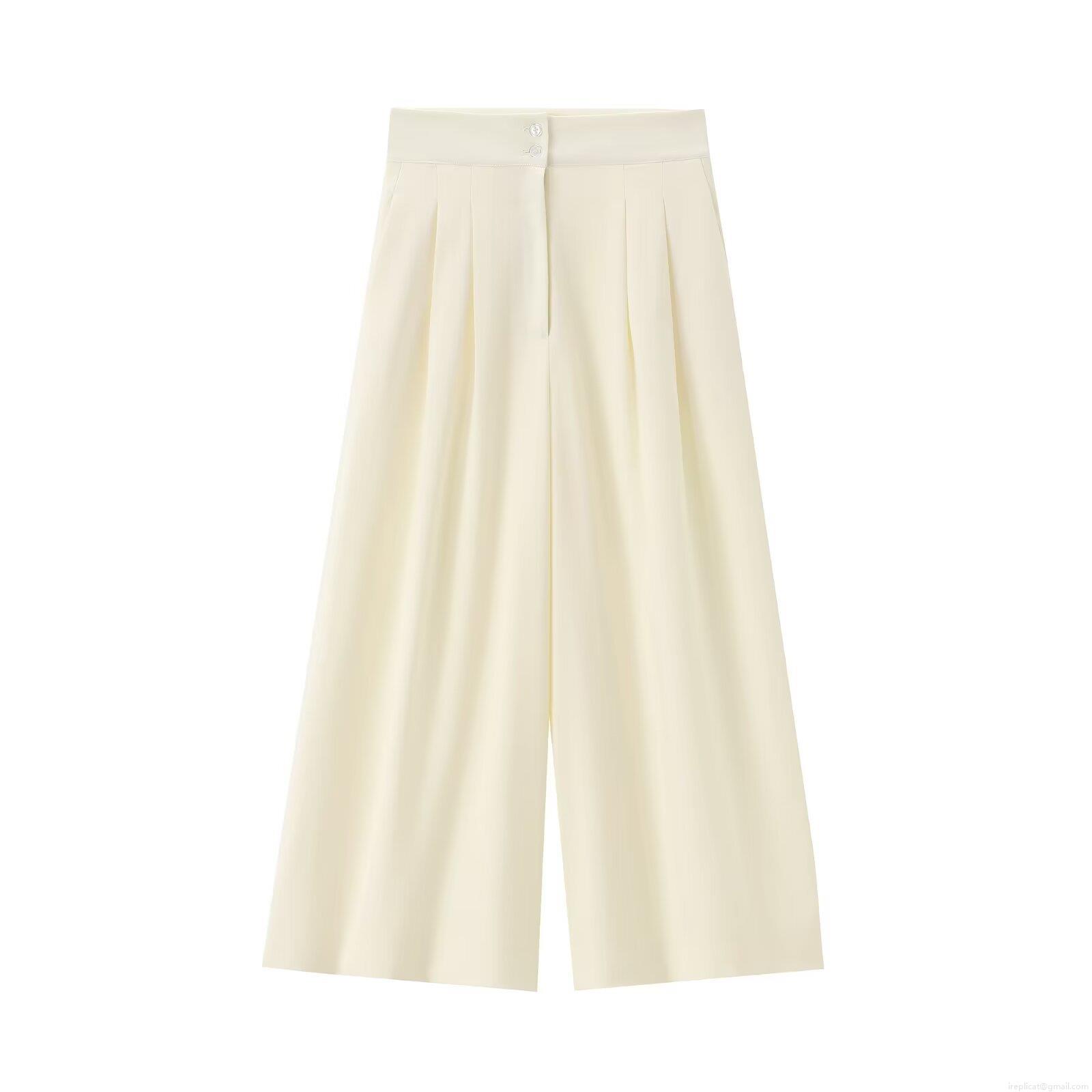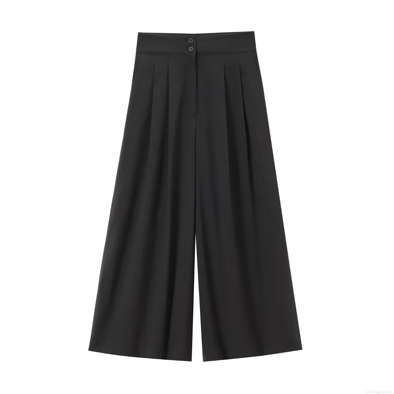 • Women's Summer Loose Wide Leg Pants Pleated High Waist Casual Palazzo Trousers Solid Color Button Detail Slacks For Office Daily Wear