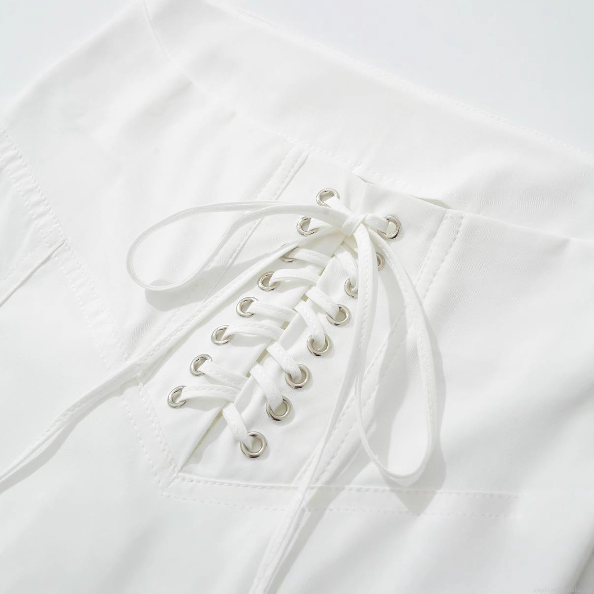 • Women's Summer White Lace Patchwork Flare Pants Elegant Hollow Out Embroidery High Waist Lacing 7/10 Length Casual Trousers Streetwear Daily Vacation
