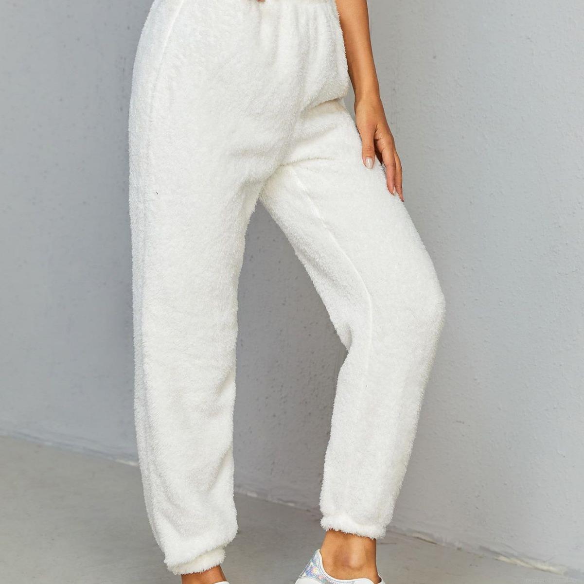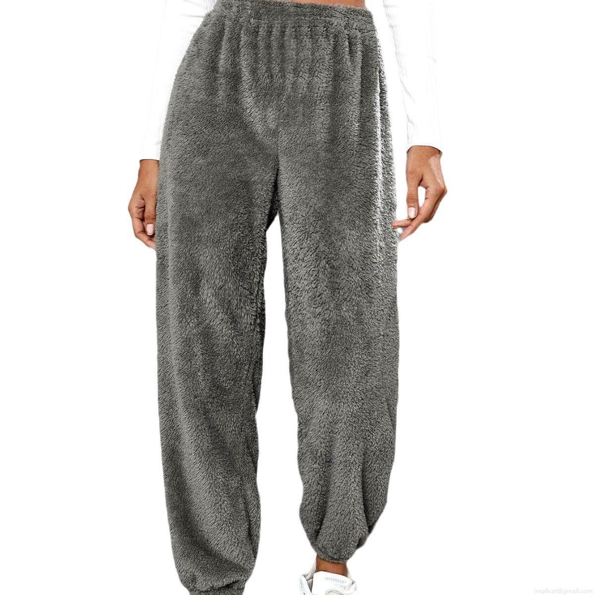 Solid Color, Elastic Waistband, Drawstring Design, Plush Texture, Foot Opening