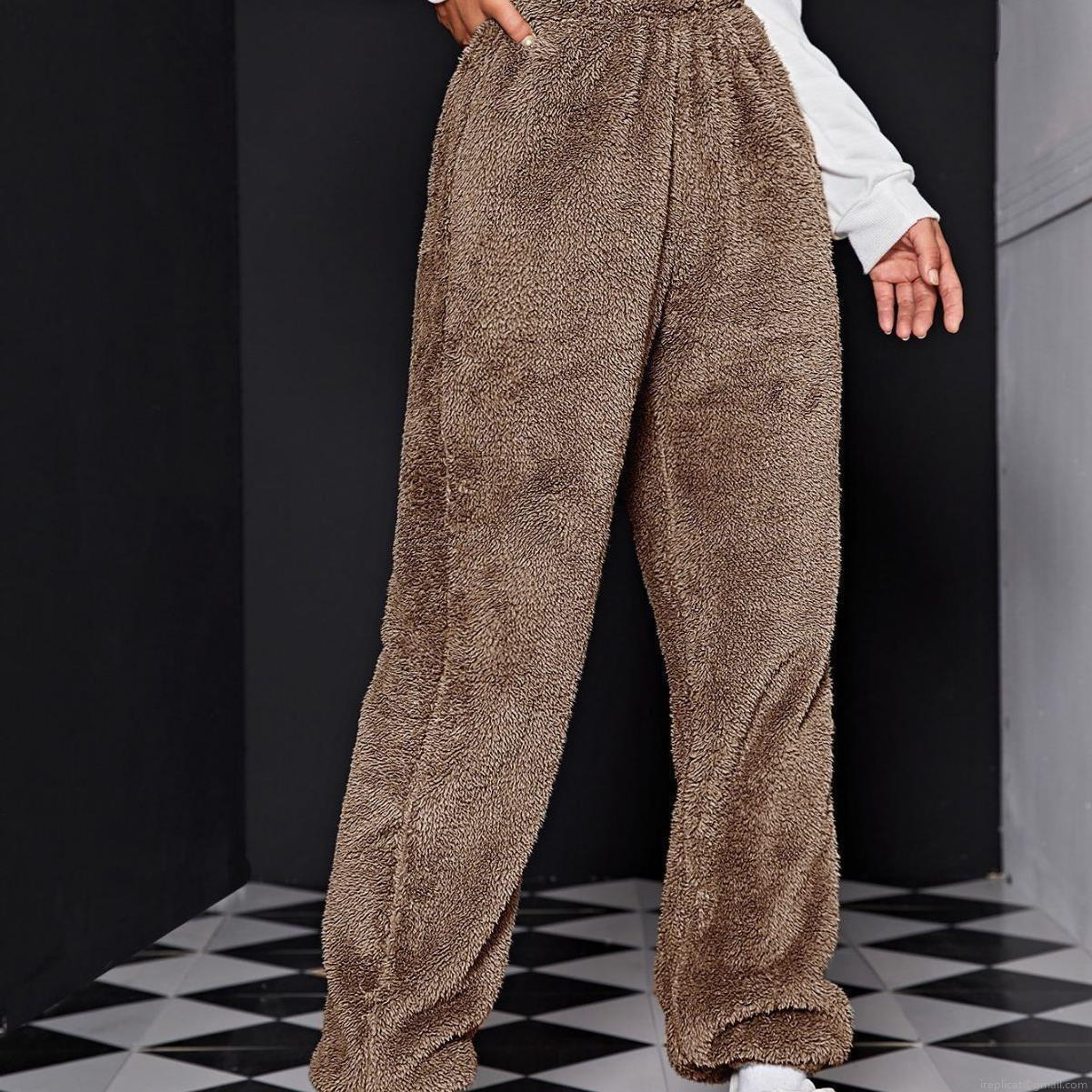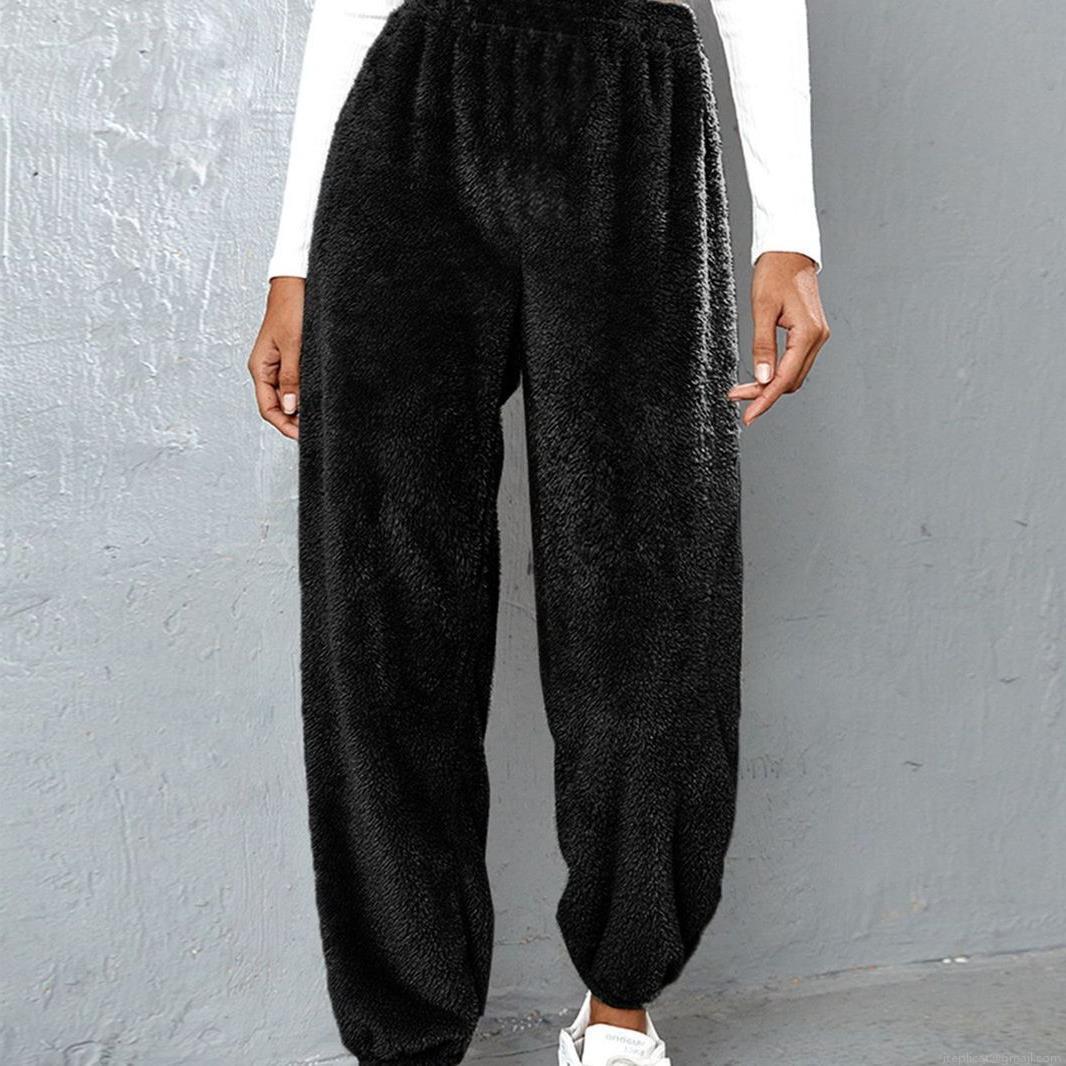 • Women's Thick Sherpa Fleece Joggers High Waisted Drawstring Elastic Waist Cuffed Hem Warm Winter Casual Sweatpants Solid Color Wool Blend Lounge Pants