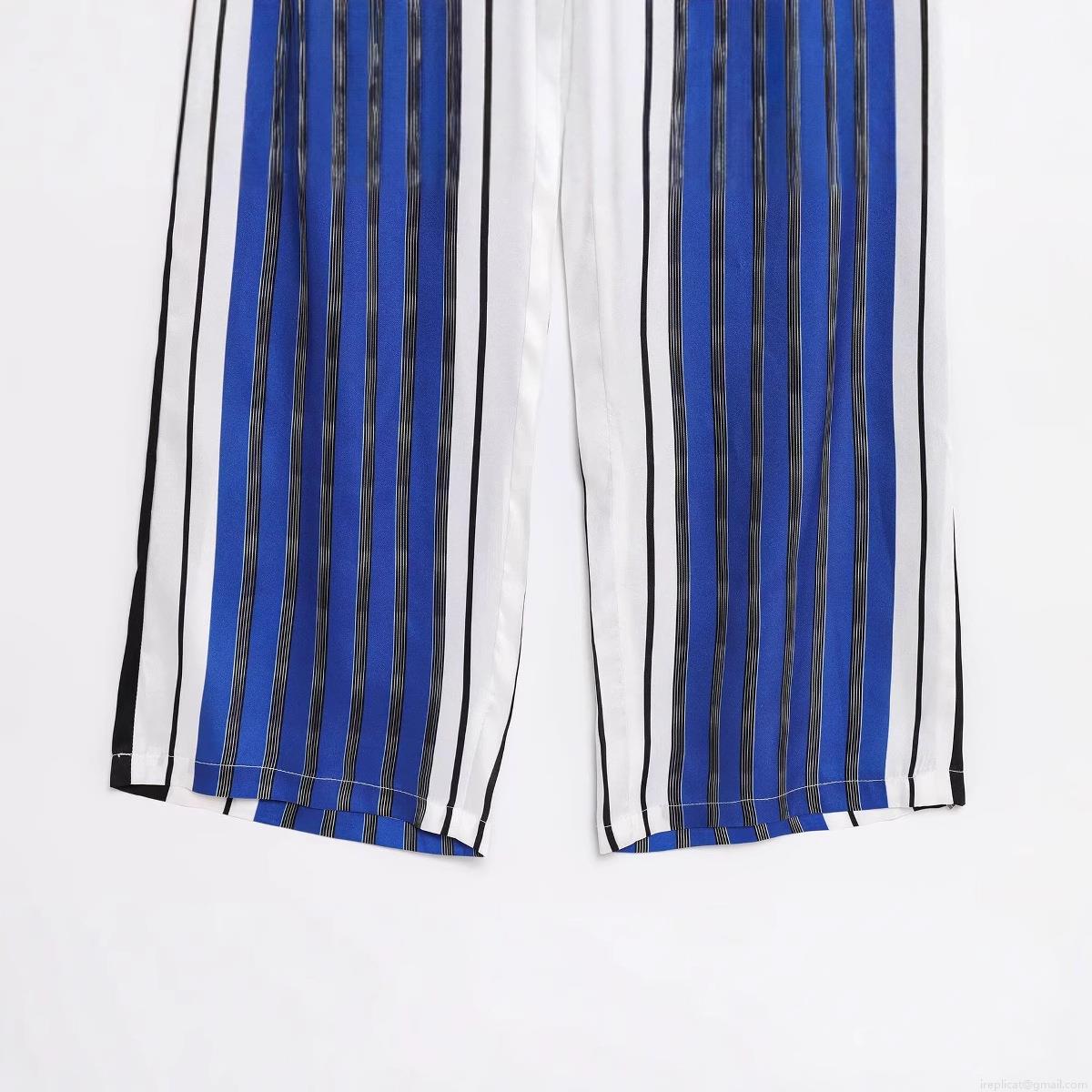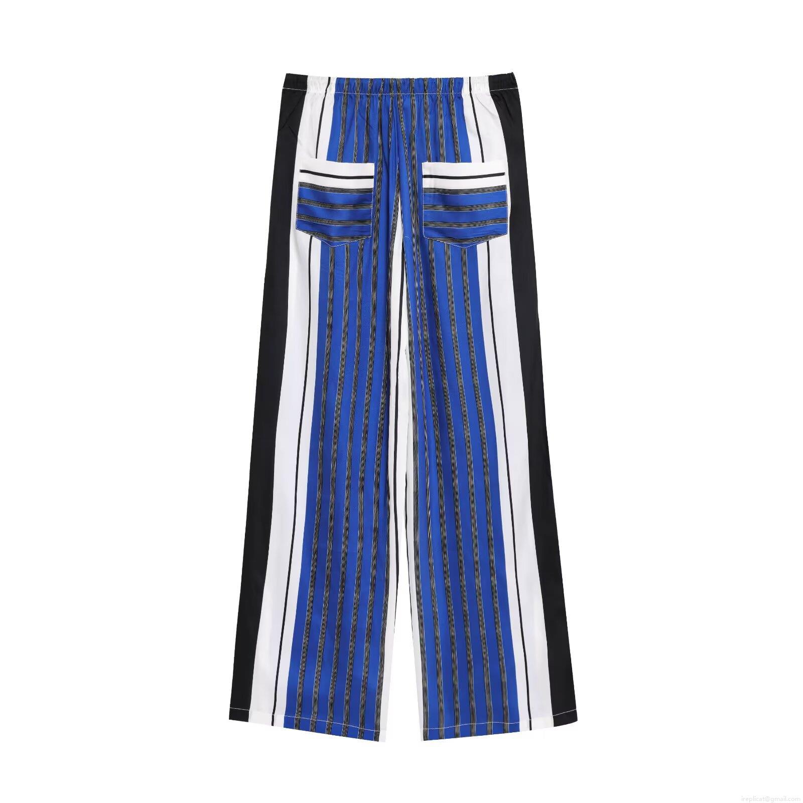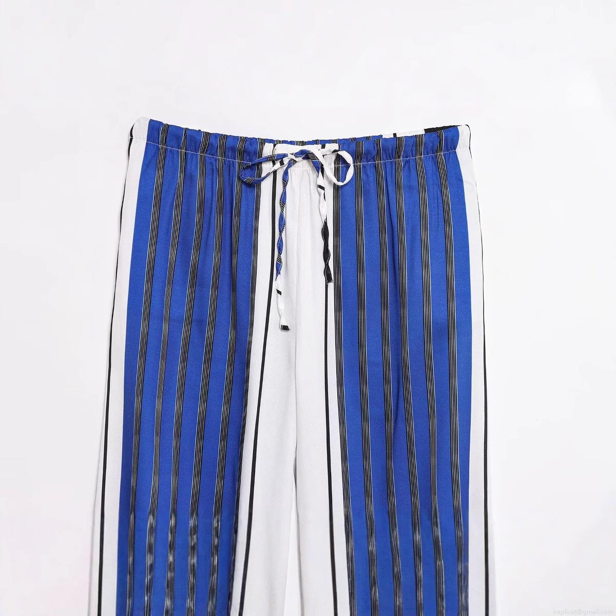 • Women's Vertical Stripe Wide Leg Pants High Waist Drawstring Polyester Casual Trousers for Daily Summer Lounge Loose Fit Comfortable Pants