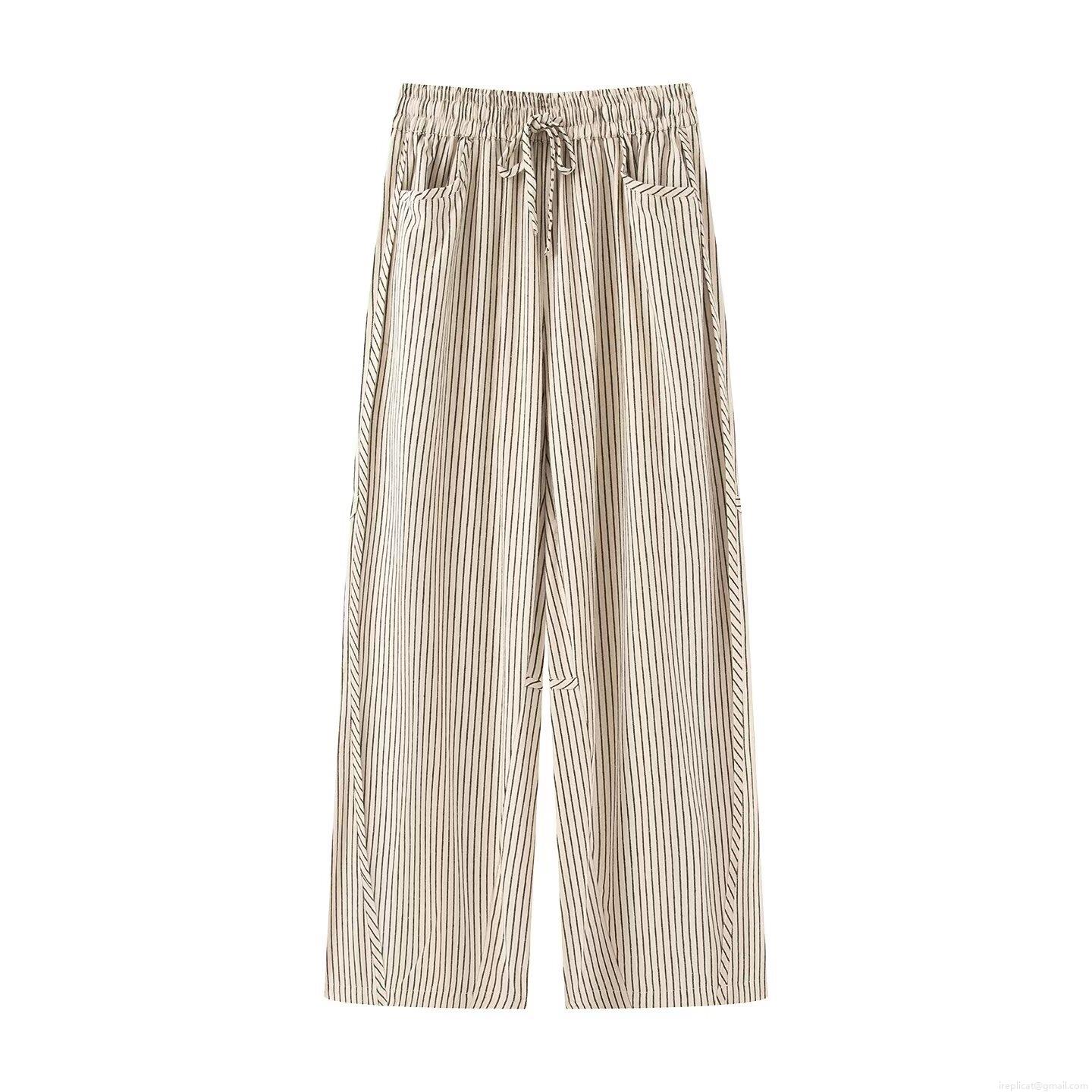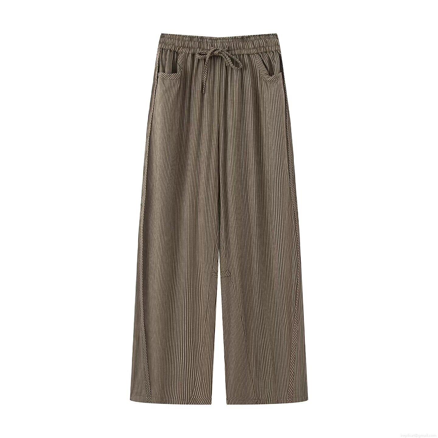 • Women's Vertical Striped Wide Leg Pants Elastic High Waist Drawstring Casual Trousers Loose Straight Streetwear Fall Long Pants