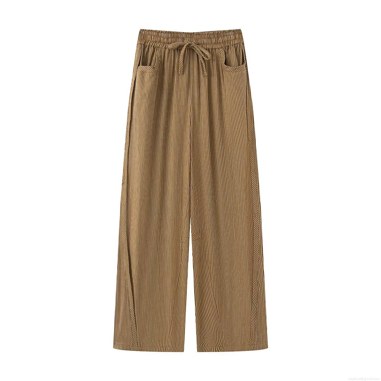 Women's Vertical Striped Wide Leg Pants Elastic High Waist Drawstring Casual Trousers Loose Straight Streetwear Fall Long Pants