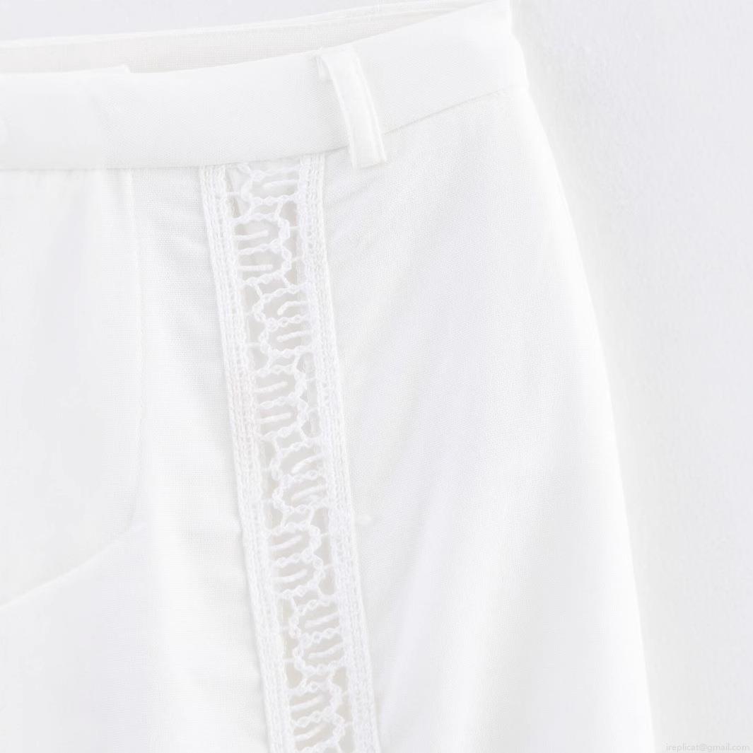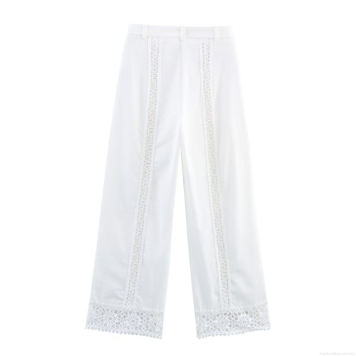 • Women's White Lace Hollow Out Wide Leg Pants Bohemian Casual Patchwork Trousers With Elastic Waist For Vacation Summer Streetwear