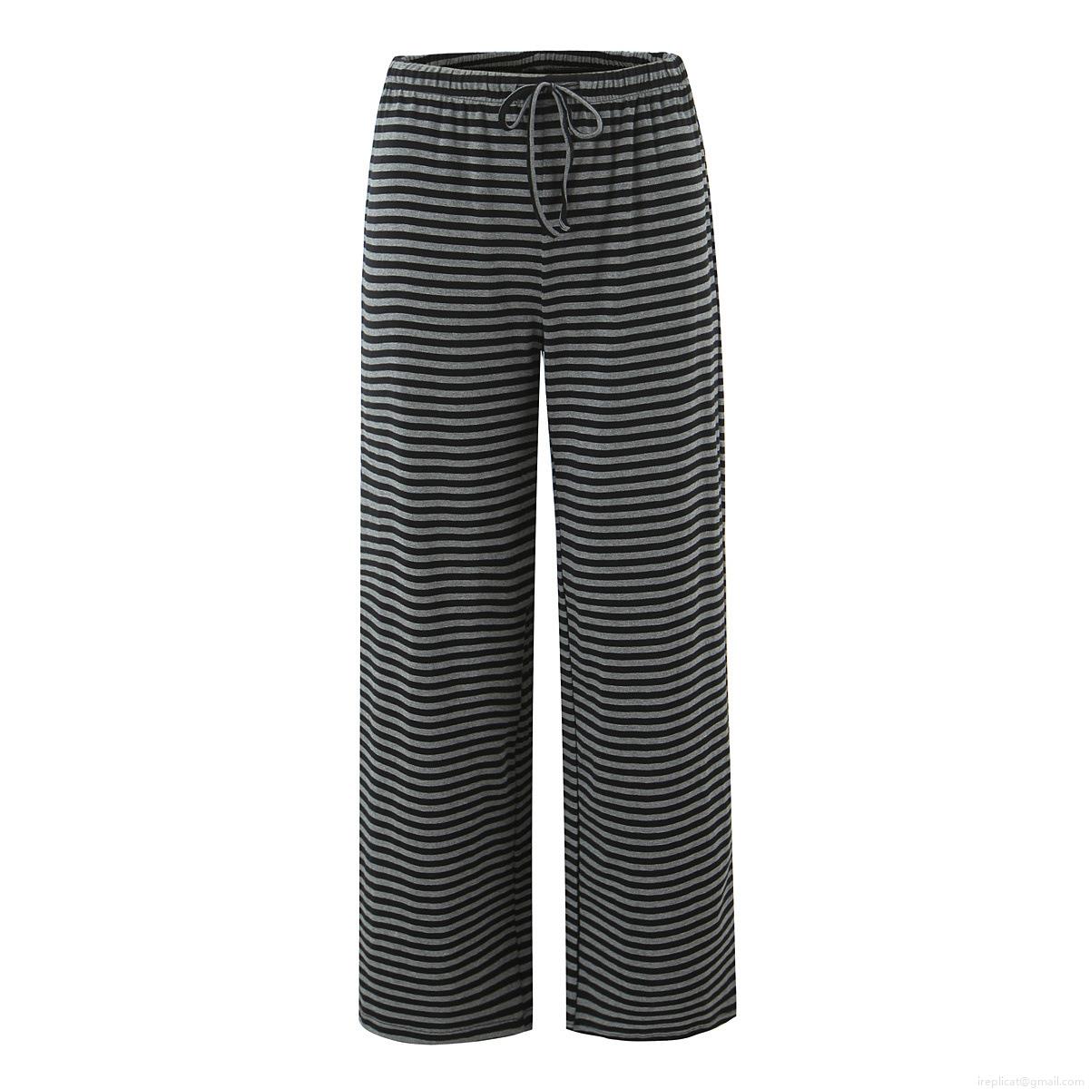 Solid Color, Stripe, Lace, Elastic Waistband, Striped Design, Flowy Wide Legs