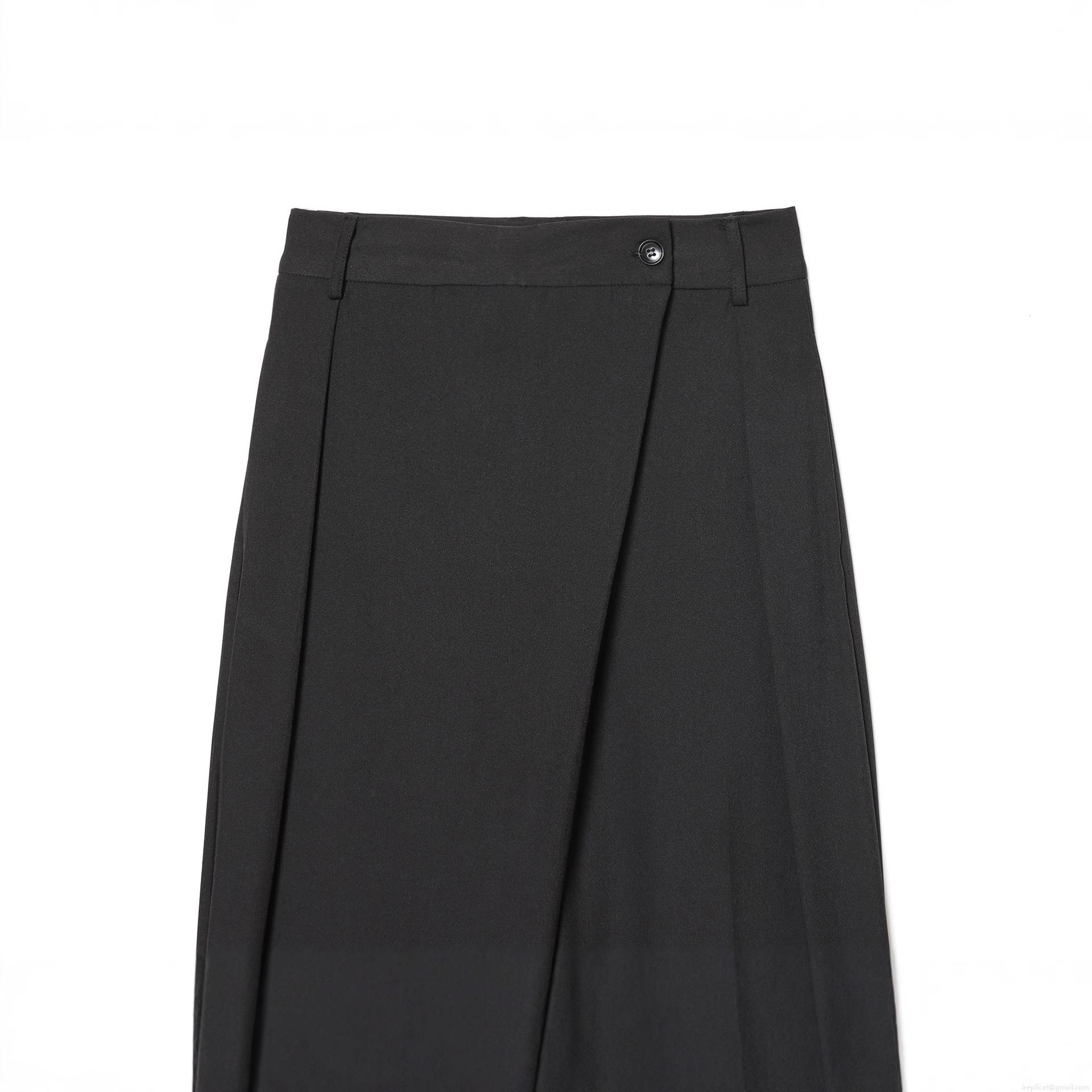 • Women's Wide Leg Trousers Elegant Asymmetric High Waist Button Detail Solid Black Loose Fit Long Pants For Casual Office Daily Wear Trendy High Street Style