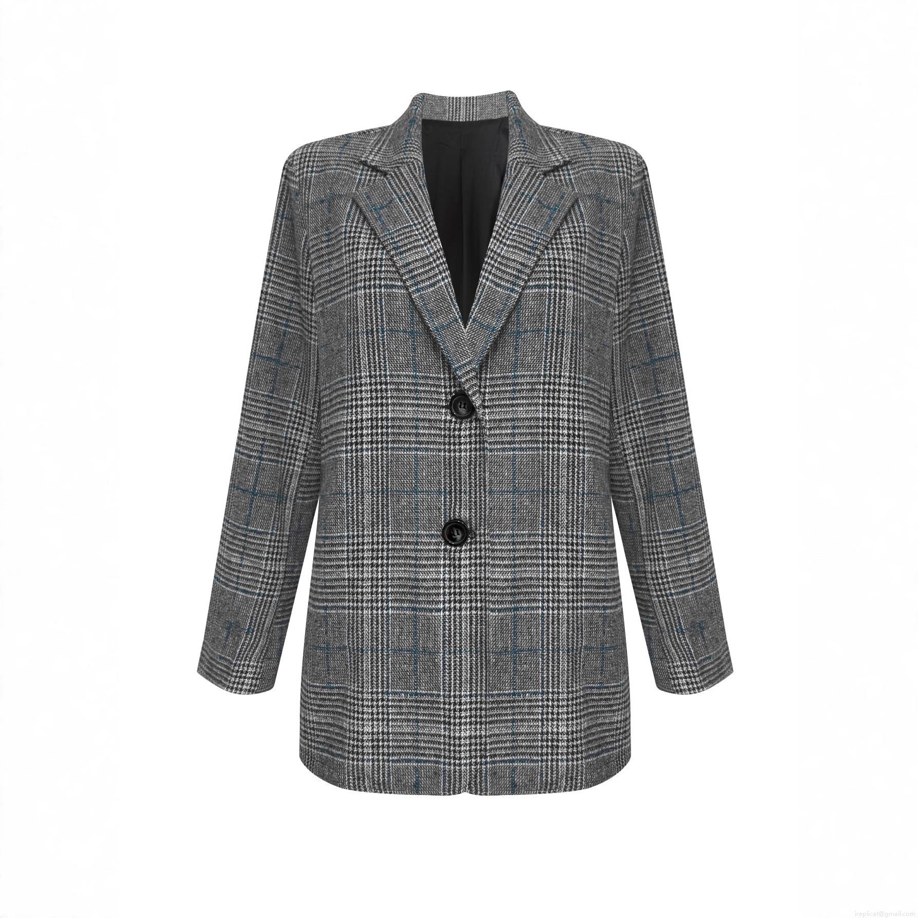• Women's Plus Size Plaid Blazer Jacket Casual Long Sleeve Notch Lapel Single Breasted Loose Suit Coat Vintage British Style Work Office Outerwear