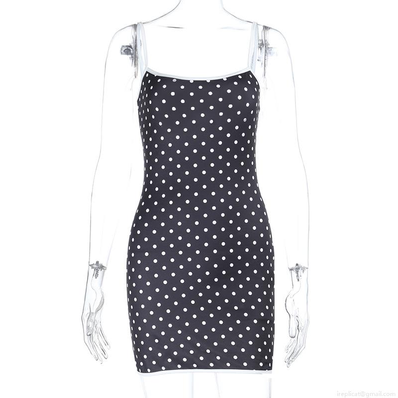 • Women's Polka Dot Print Spaghetti Strap Bodycon Mini Dress Sexy Backless Summer Beach Party Contrast Trim Sleeveless Polyester Spandex Dress