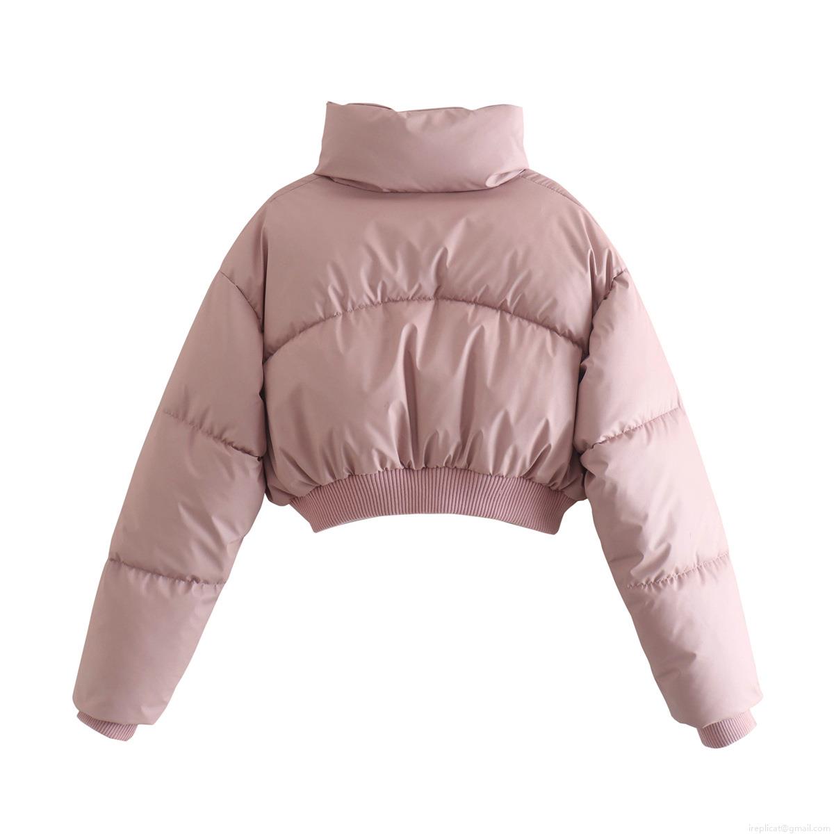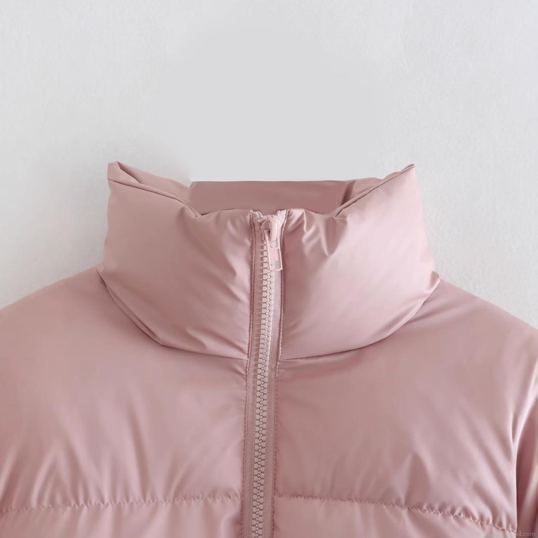 Women Fashion Short Puffer Jacket Stand Collar Long Sleeve Quilted Padded Coat Warm Zip Up Winter Outerwear Casual Pink Bubble Jacket