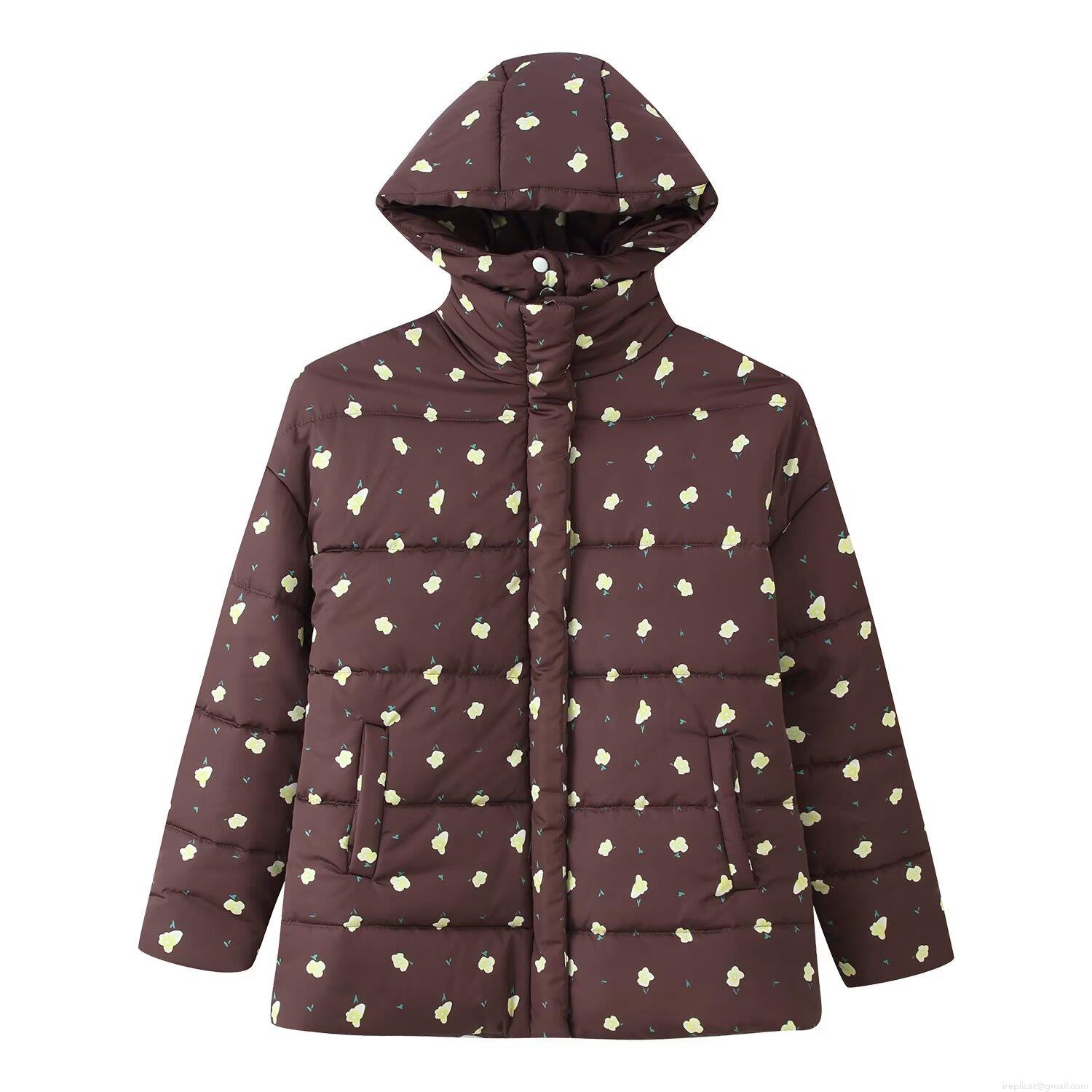 • Women Floral Printed Hooded Padded Jacket Polyester Quilted Warm Winter Coat Loose Streetwear Outerwear For Autumn Winter Long Sleeve Zipper Up Puffer Jacket