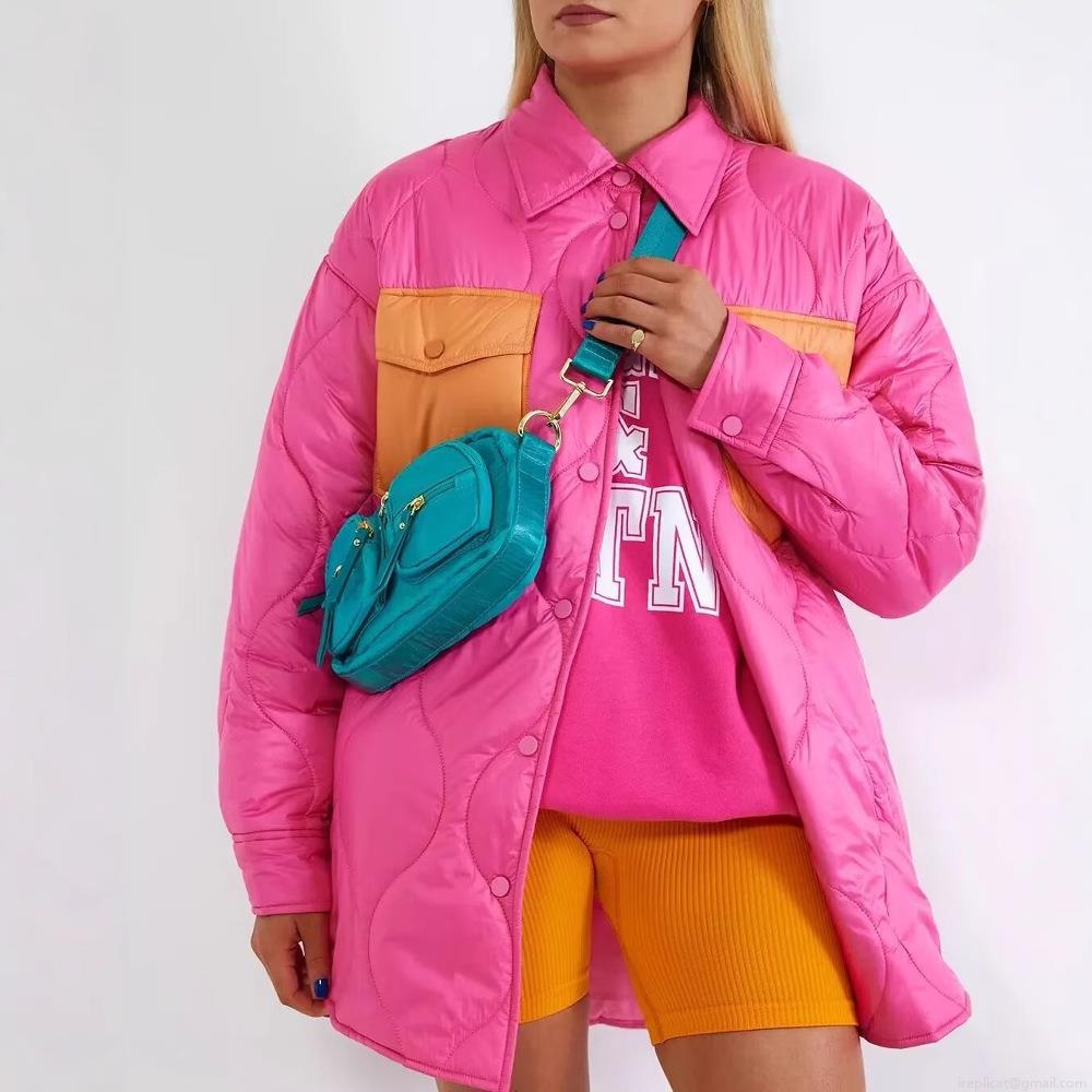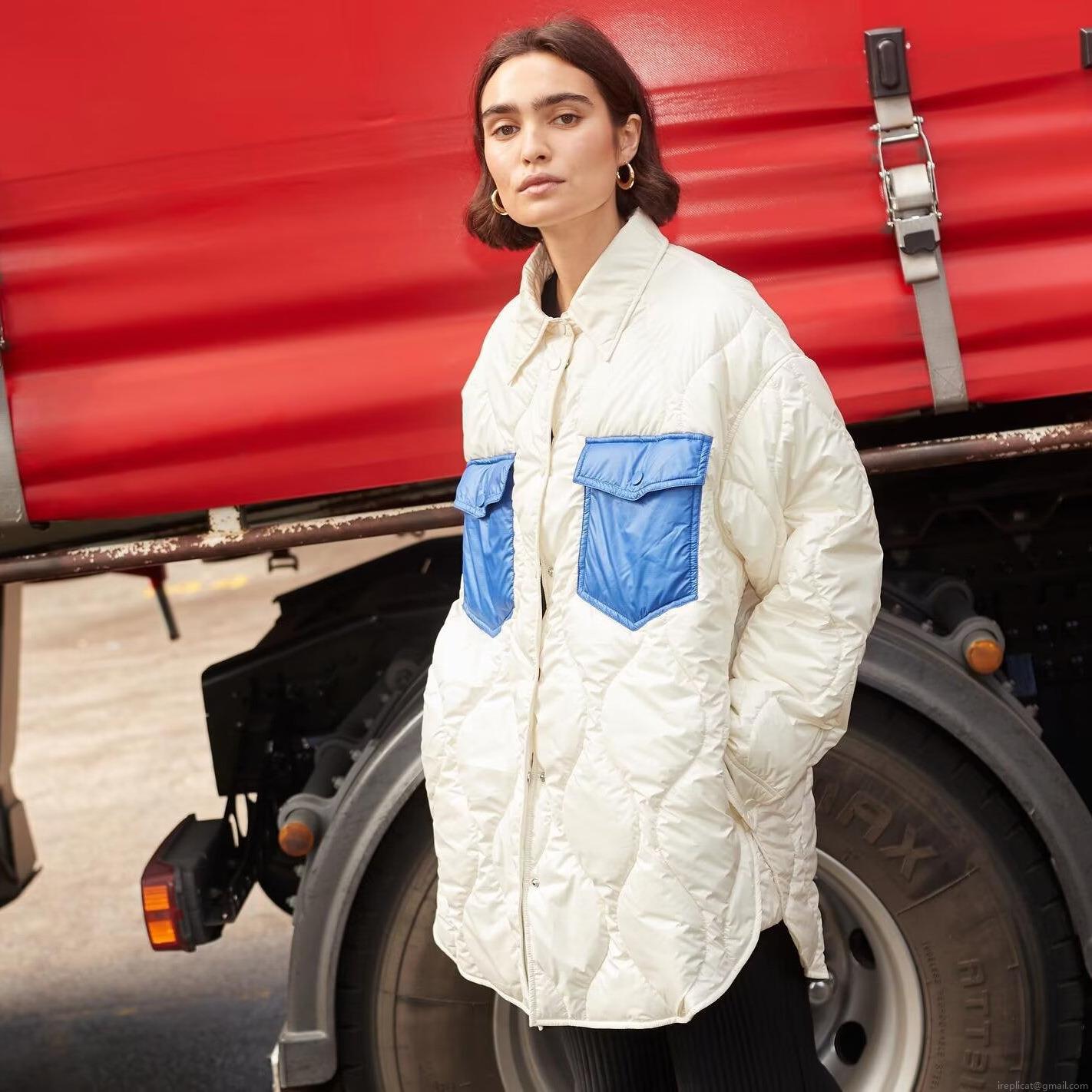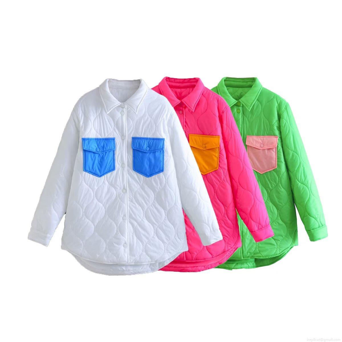 • Women Quilted Jacket Color Block Contrast Pocket Padded Coat Lightweight Shirt Jacket Button Down Outwear For Fall Winter Casual Streetwear Fashion